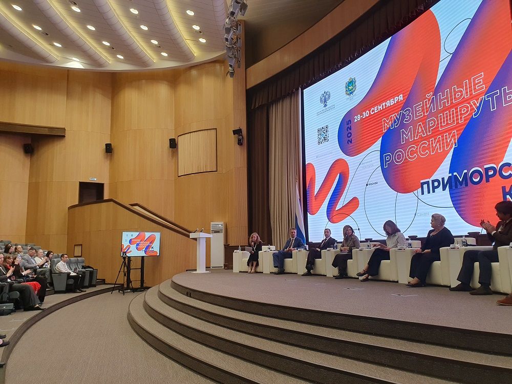 29 сентября 2025 года доцент кафедры теологии епископ Уссурийский Иннокентий и студенты бакалавриата 4 курса в рамках изучения дисциплины «Историко-церковное краеведение и паломническое экскурсоведение» побывали на пленарном заседании форума «Музейные маршруты России». Темой обсуждения стала «Историческая память как ресурс конструирования будущего: вызовы и перспективы».