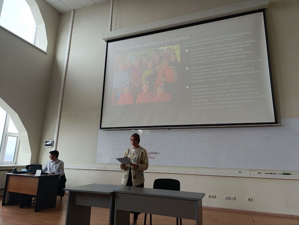 По окончании основной части проблемного обсуждения студент 2 курса Юрий Мамотенко поделился впечатлениями от своей туристической поездки во Вьетнам, об увиденной там храмовой архитектуре и аутентичных объектах религиозного культа.