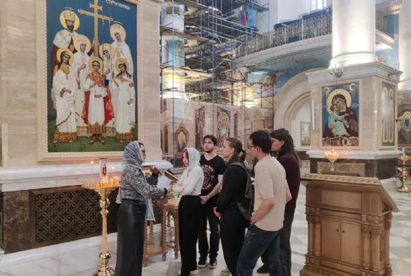 18 апреля 2026 года старший преподаватель кафедры теологии священник Дионисий Гордеев провел экскурсию для обучающихся в ДВФУ иностранных студентов в храме Казанской иконы Божией Матери г. Владивостока. В ходе экскурсии участники познакомились с