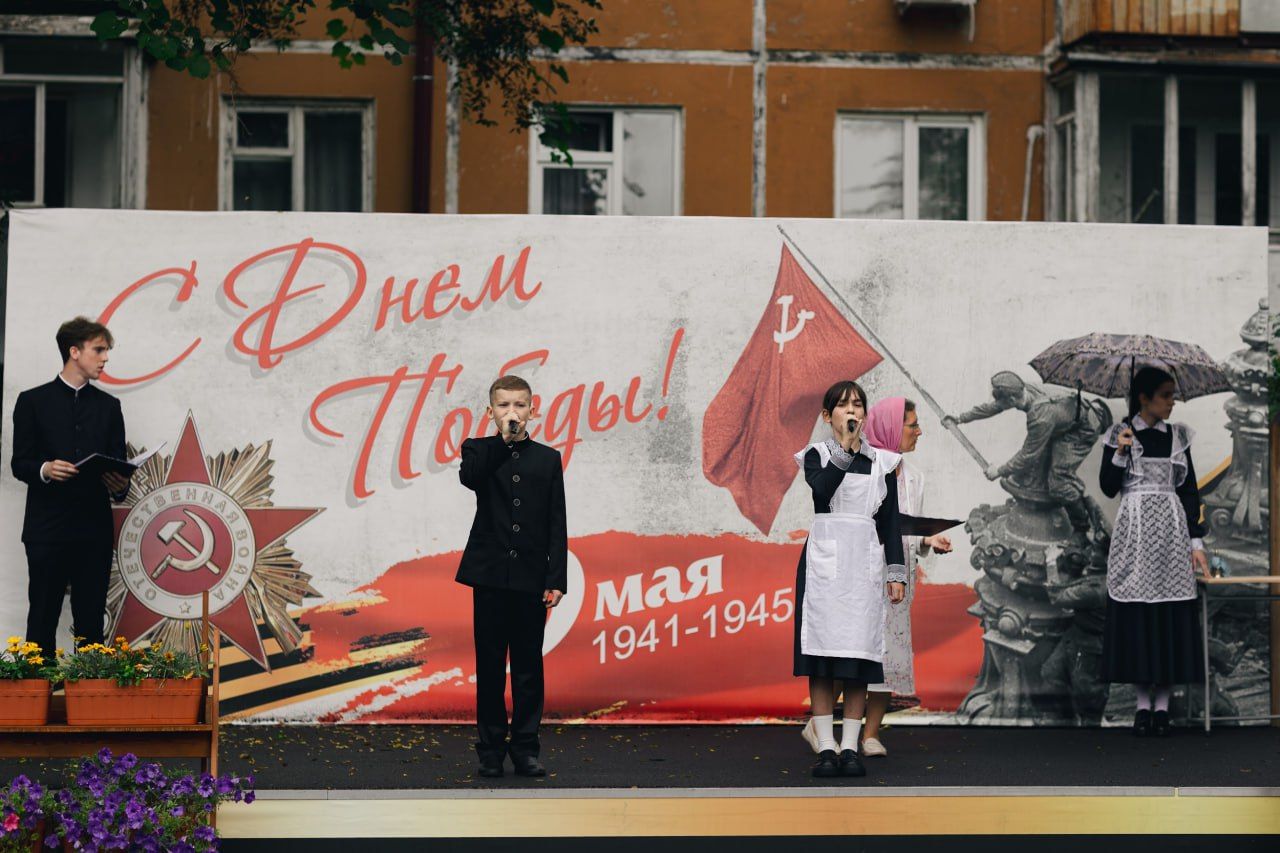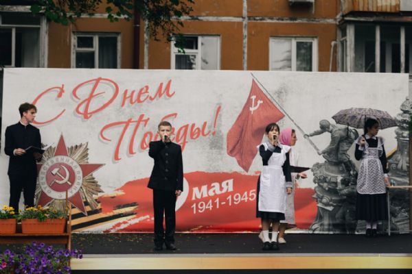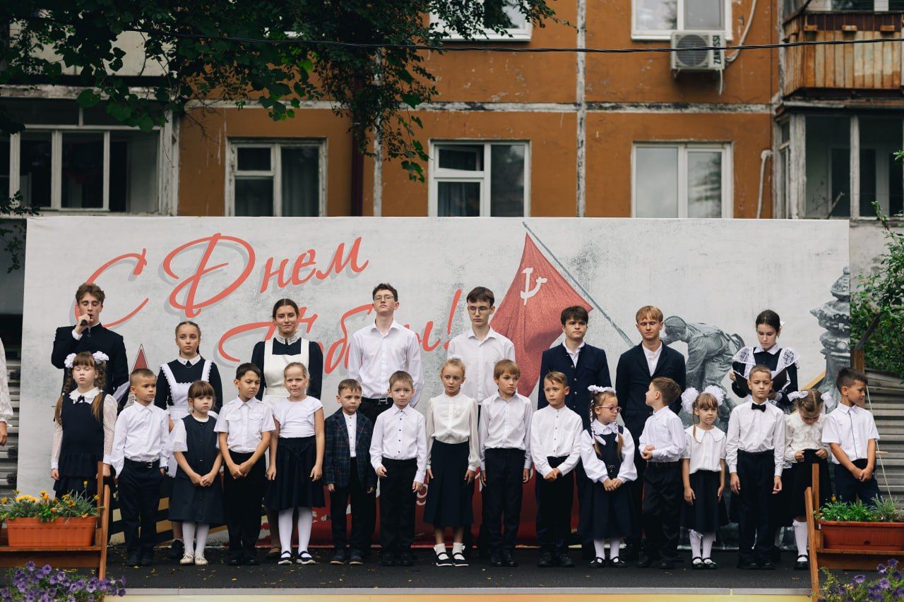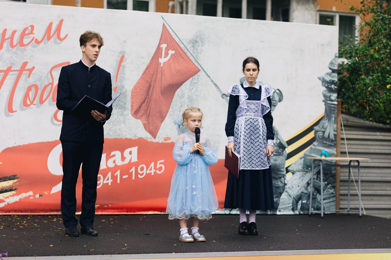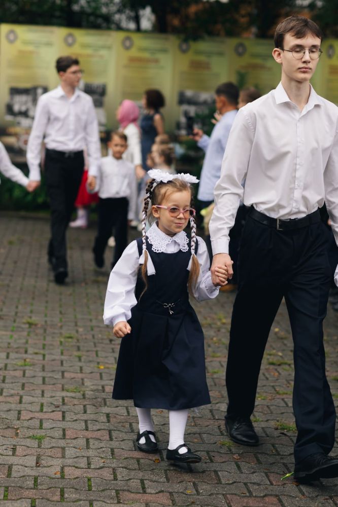 После этого на территории гимназии состоялась торжественная линейка. Гимназисты приготовили для гостей несколько замечательных концертных номеров. Один из них был особенный: ребята отдали дань уважения и благодарности тем родным и близким, кто сейчас защищает Отечество на его западных рубежах.