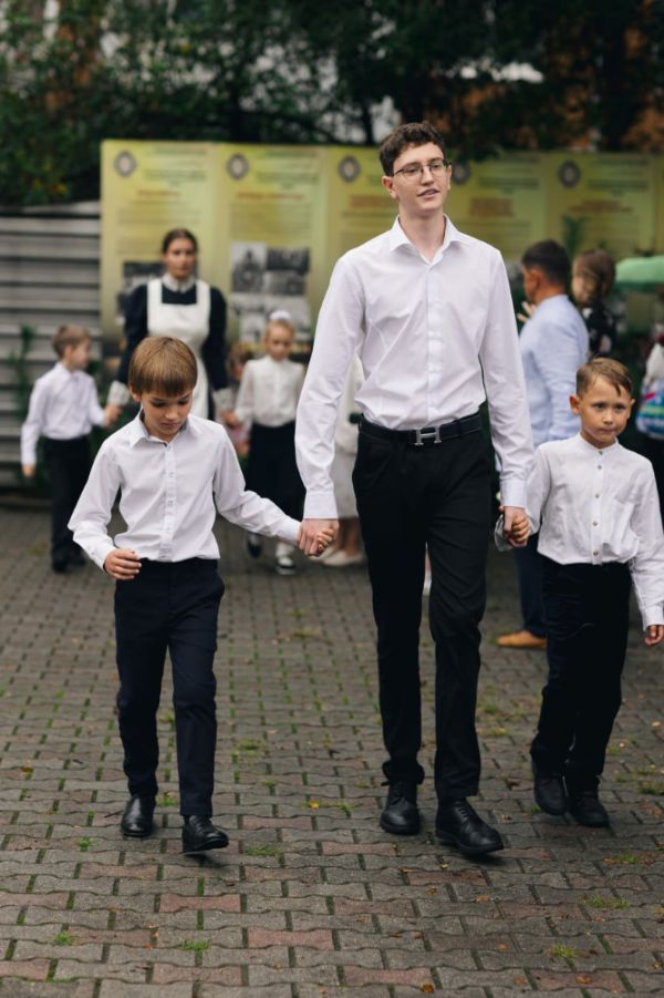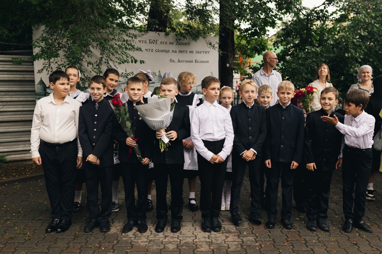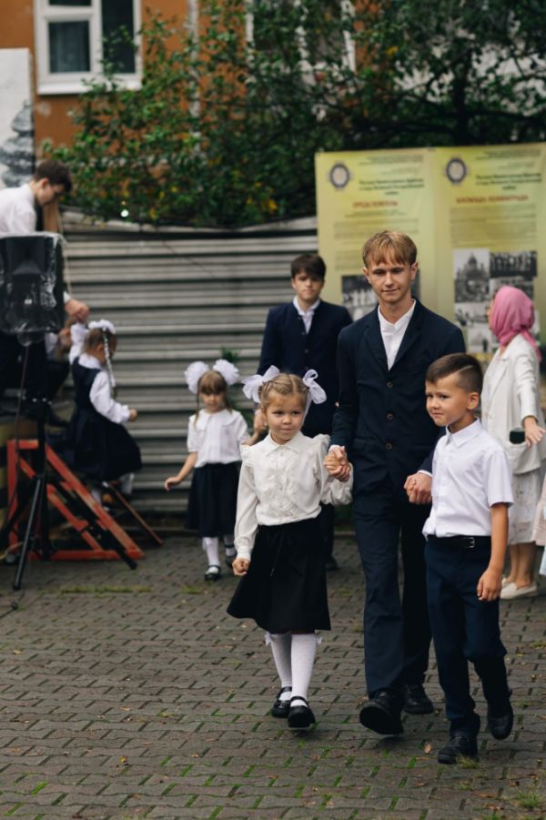 По доброй традиции в завершение линейки прозвучал первый звонок — его дали Настя Рыбалко и Серафим Венчаков, а затем старшеклассники отвели первоклашек в их кабинет. В этом году в Православной гимназии будет обучаться 146 учеников, из них 16 — в первом классе.