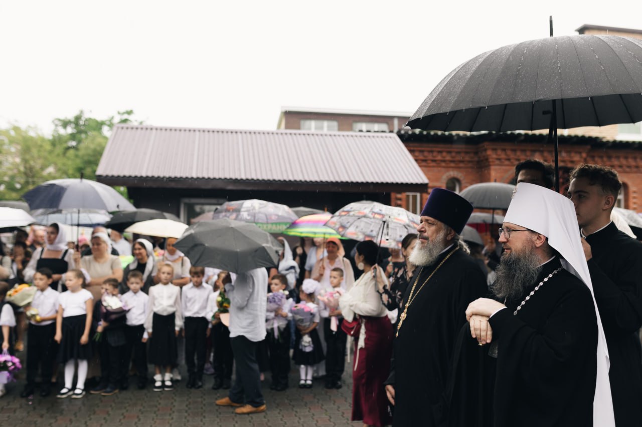31 августа День знаний в Православной гимназии в честь святых Кирилла и Мефодия начался с праздничного архиерейского богослужения. После окончания Литургии митрополит Владивостокский и Приморский Павел совершил молебное пение на начало учебного года.