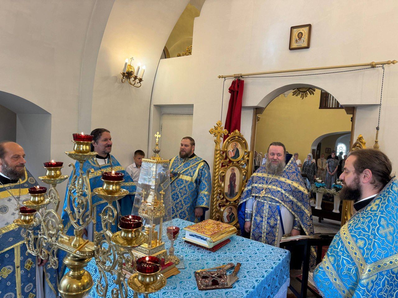 Богослужение возглавил благочинный Северного благочиния игумен Никита (Зеленюк). Ему сослужили настоятель храма протоиерей Андрей Ванаков, настоятель храма иконы Божией Матери "Скоропослушница" пгт. Лучегорск иерей Алексий Слабоус, иерей Владимир Ковальчук и дьякон Евгений Исаков. Проповедь после причастия сказал игумен Никита. Завершился престольный праздник общей трапезой.