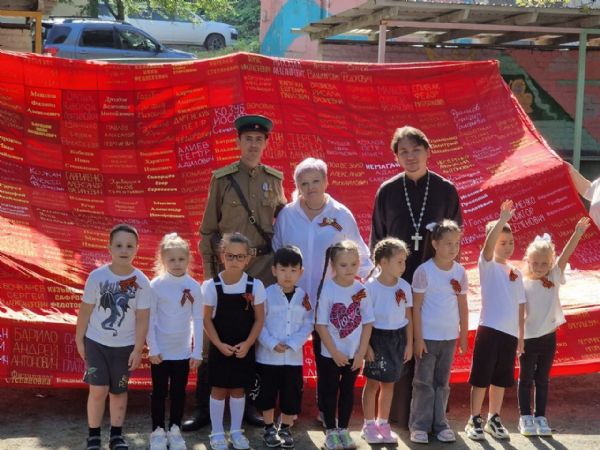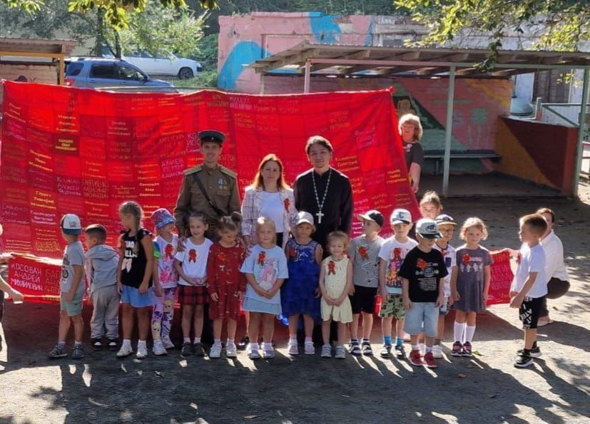 3 сентября в детском саду №182 г. Владивостока состоялась акция «Знамя победы», посвящённая окончанию Второй мировой войны. На мероприятии присутствовали сотрудники учреждения, воспитанники сада и их родители.