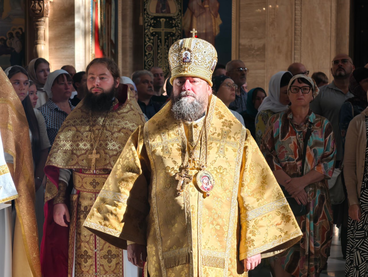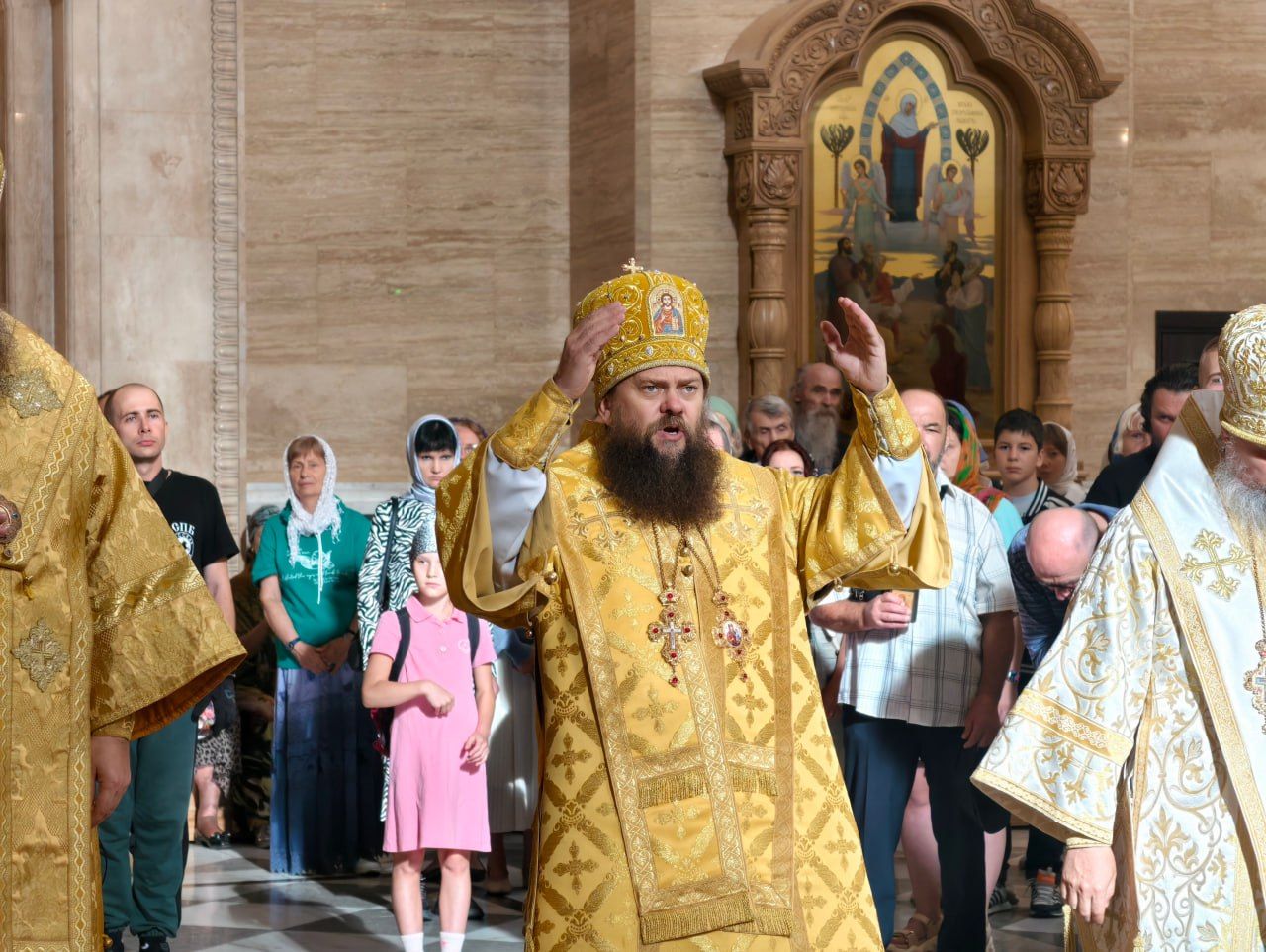 – Отрадно видеть, какие у вас многолюдные крестные ходы, отрадно видеть в храме верующих всех возрастов, особенно юношей в алтаре. Это даёт нам, архиереям надежду, что то, что мы сегодня строим, будет иметь продолжение. Лишь бы нам только не останавливаться. И всегда просим нашу паству: пожалуйста, не оставайтесь одни в храме, приводите сюда своих детей и внуков. Милостью Божией мы видим, что развивается наша Церковь, усилиями Святейшего Патриарха, который всё передаёт нам, а мы передаём священникам. Время сегодня эпохальное. Есть такая возможность, что ужасы Апокалипсиса могут не коснуться Святой Руси, если будет на Руси покаяние.
