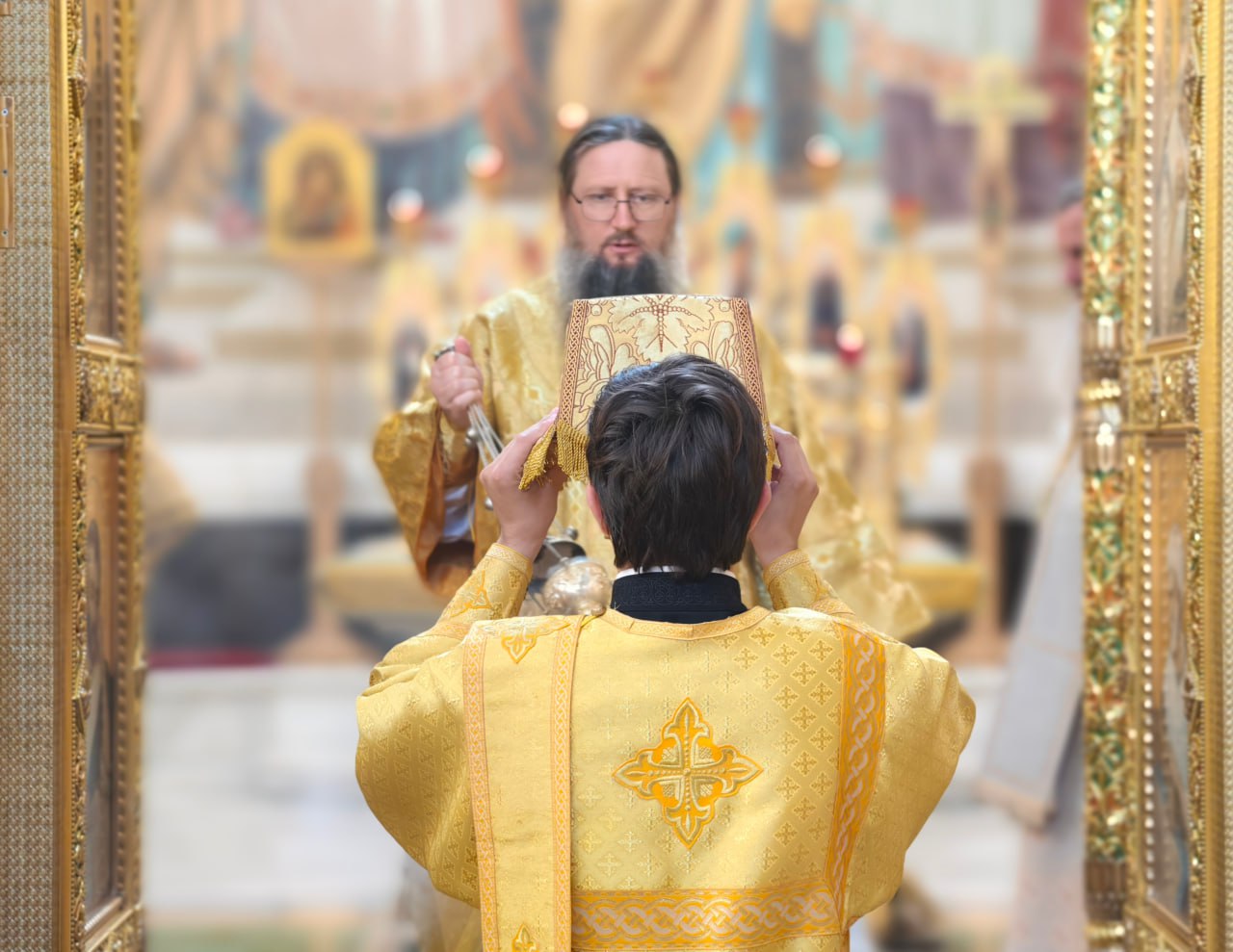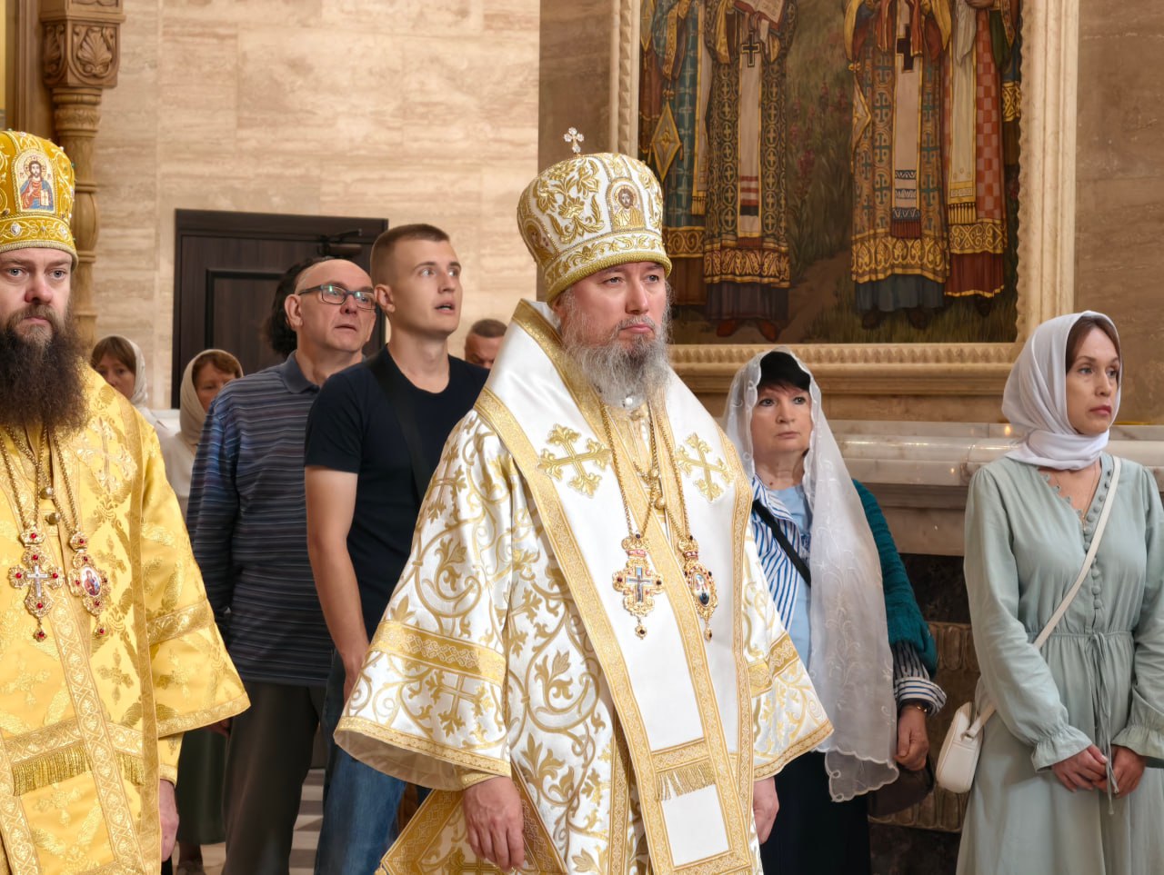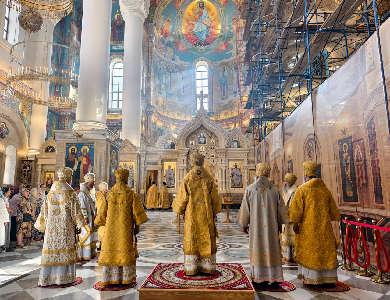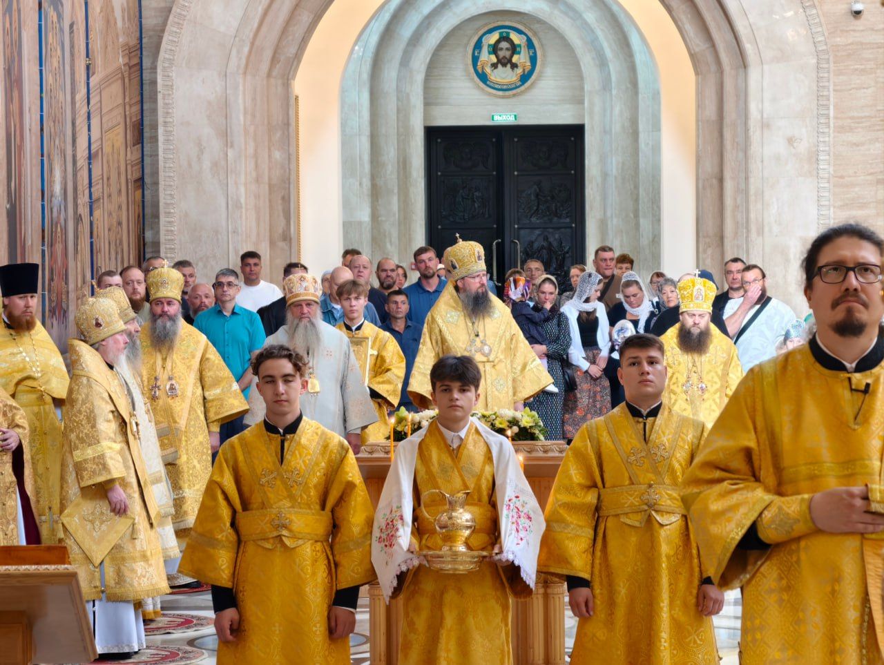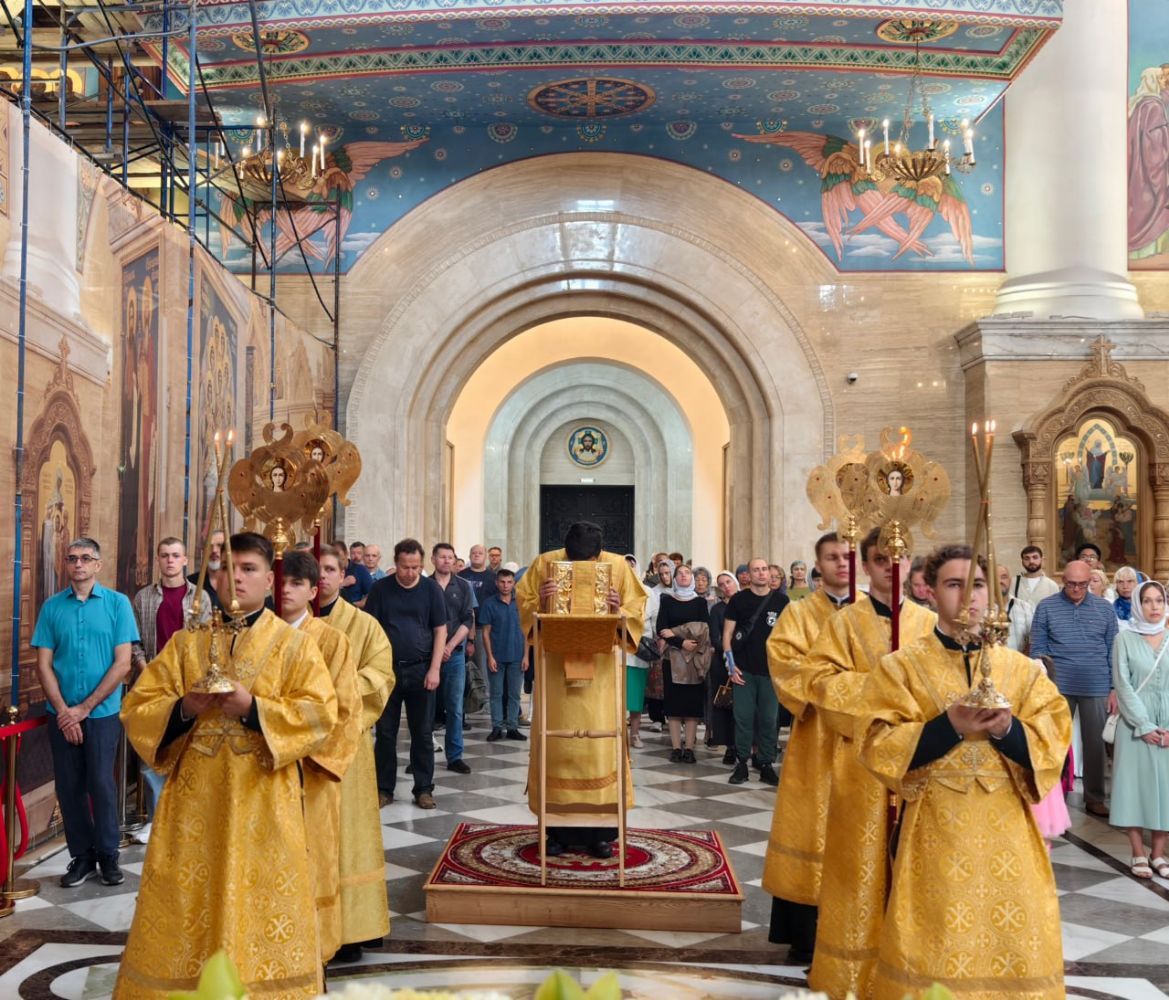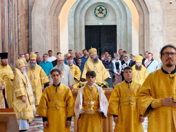 В день перенесения мощей свв. блгвв. кн. Петра и кн. Февронии и Церковного новолетия в Спасо-Преображенском кафедральном соборе состоялась торжественная соборная Литургия