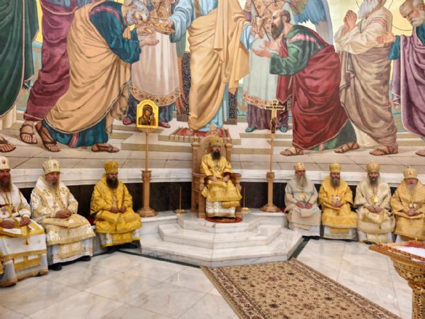 По окончании Литургии все архипастыри вышли на амвон, откуда к духовенству и верующим обратился митрополит Павел. Владыка поздравил всех с воскресным днём и началом Нового церковного года, а также приветствовал каждого из участвовавших в богослужении архиереев.