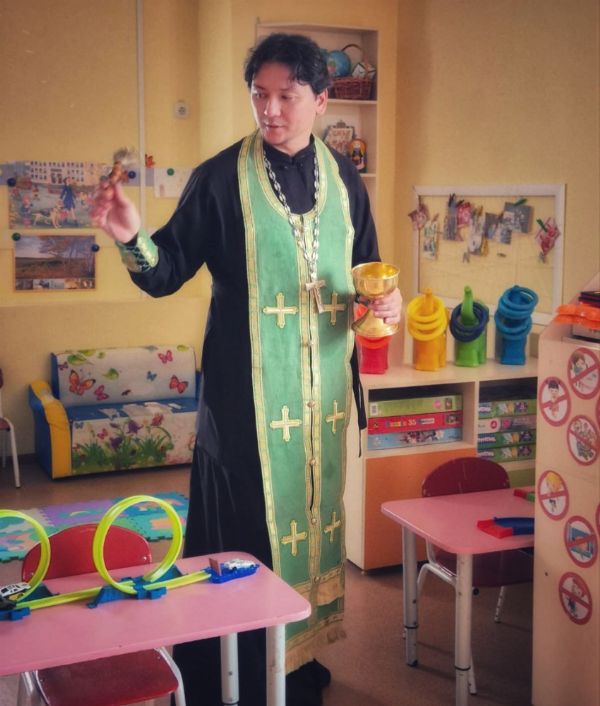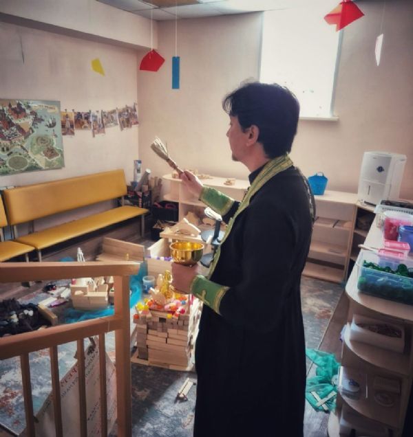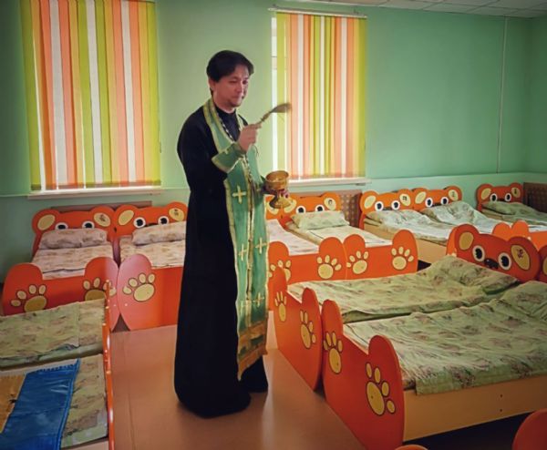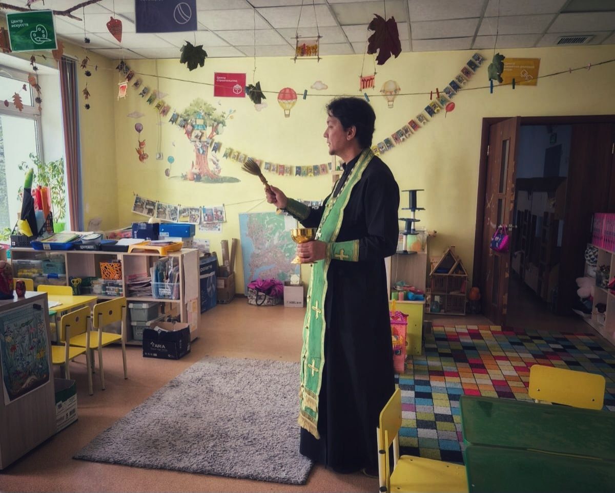 Протоиерей Андрей Калчев по приглашению директора учреждения Е. А. Бондаревой совершил чин освящения детского сада N115 «Аленький цветочек»