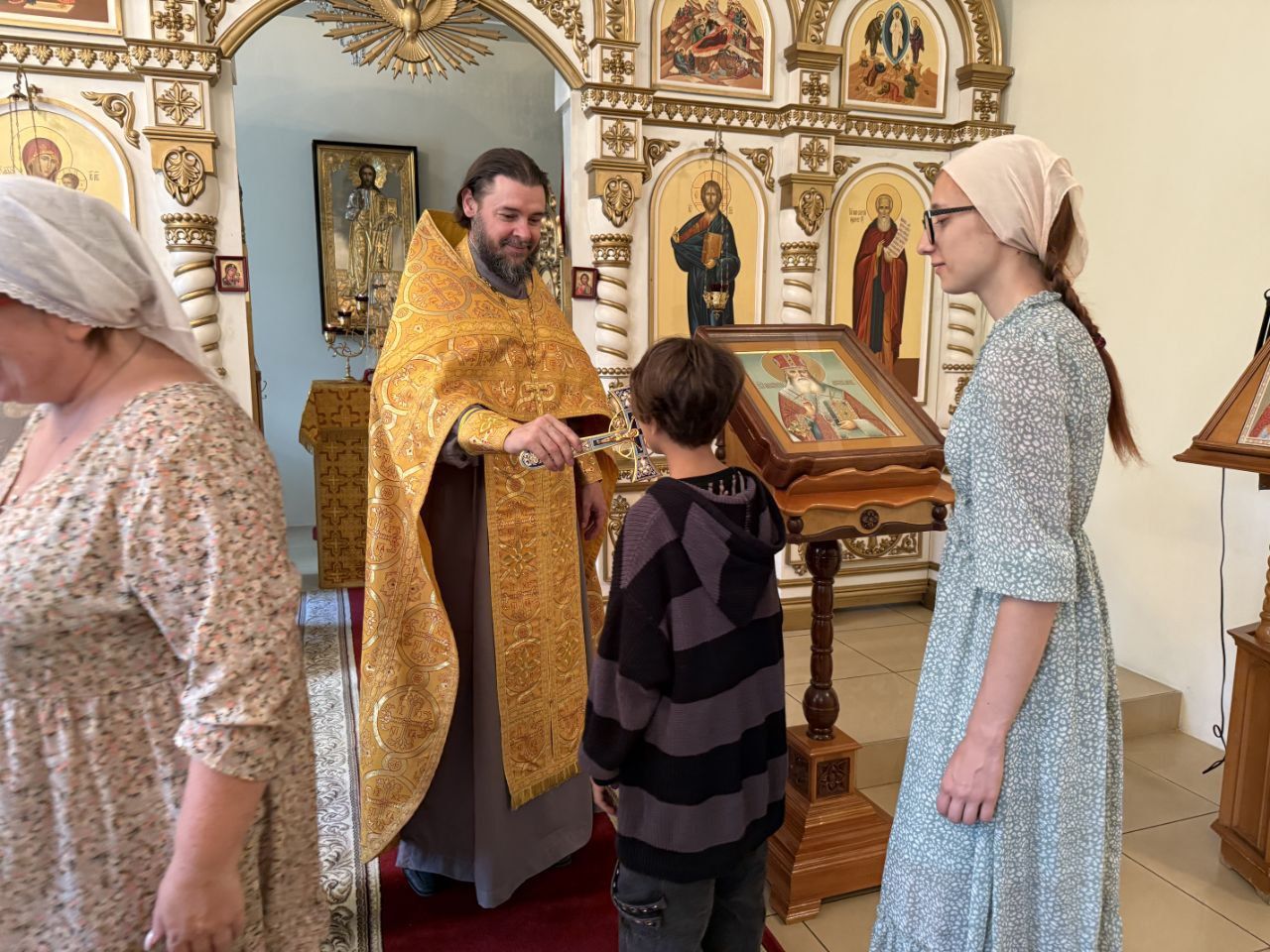 Перед занятием духовник школы протоиерей Даниил Нефедьев по традиции отслужил молебен на начало учебного года в храме прп. Сергия Радонежского и благословил педагогов и учеников. Затем состоялось чаепитие с домашней выпечкой и угощениями.