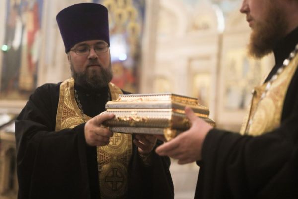В Спасо-Преображенском соборе г. Владивостока был отслужен последний молебен перед ковчегом с частицей Пояса Пресвятой Богородицы и святыми мощами свв. правв. Иоакима и Анны