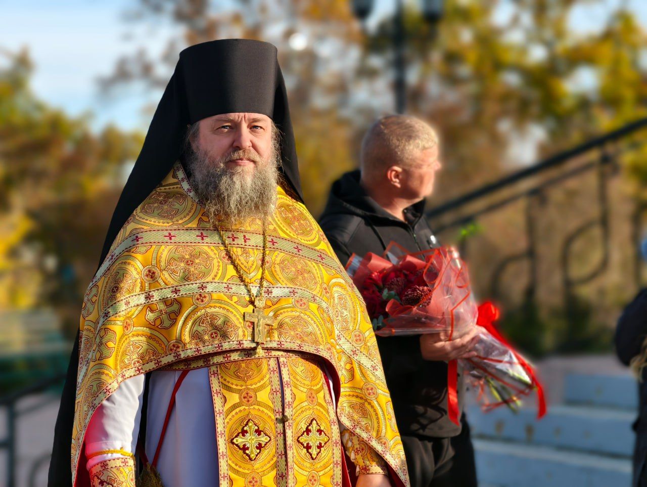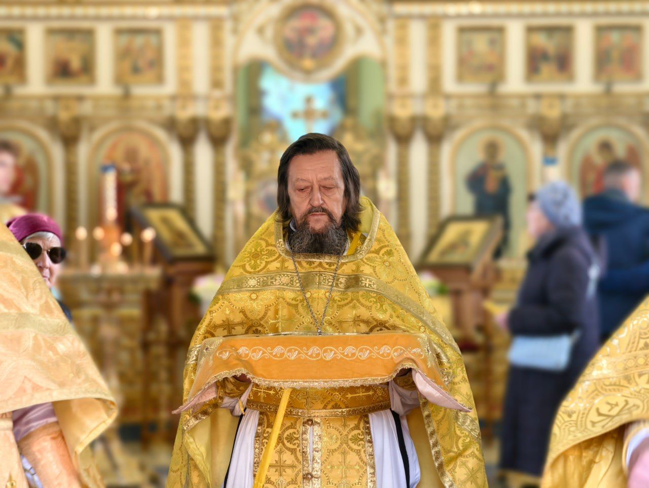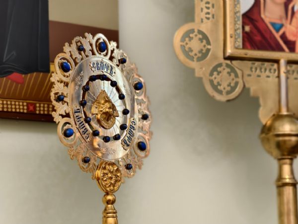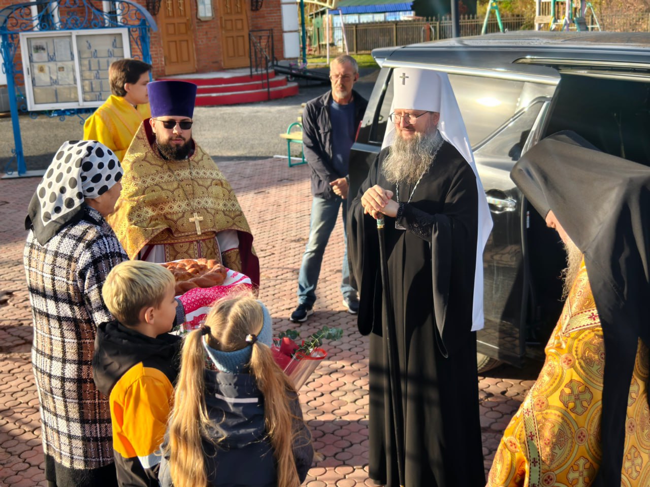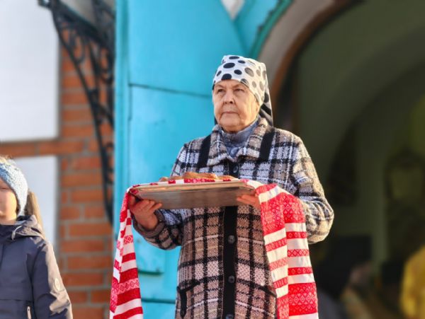 На входе в храм прихожане встречали главу митрополии хлебом-солью и букетами цветов.