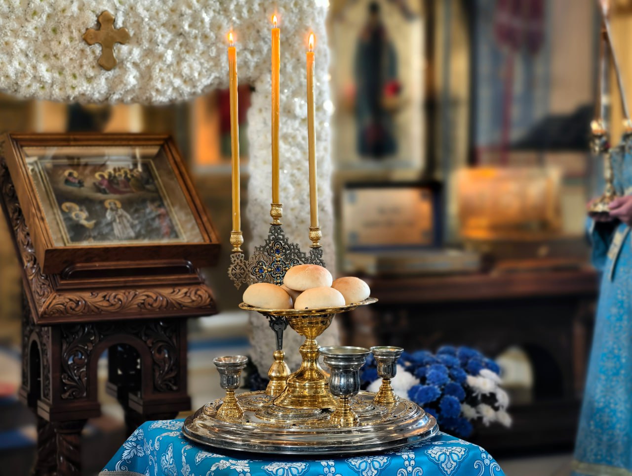 После сугубой и просительной ектении владыка Павел совершил литию, а также благословение и освящение пяти хлебов, пшеницы, вина и елея. Во время утрени митрополит помазал всех присутствовавших освященным маслом, символизирующим Божию милость ко всем терпящим нужду и скорби по причине греха.