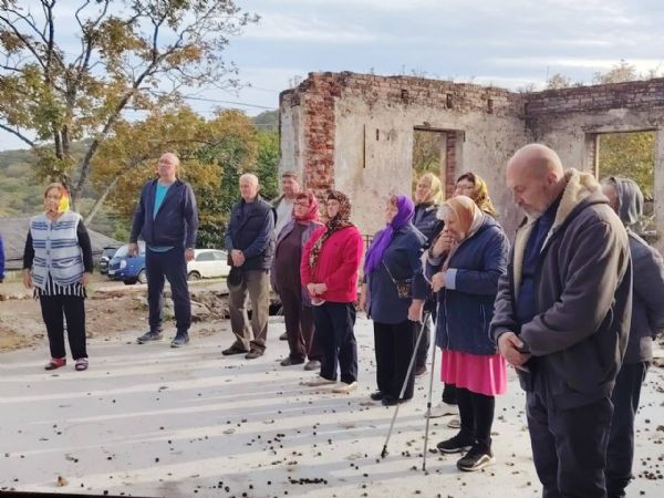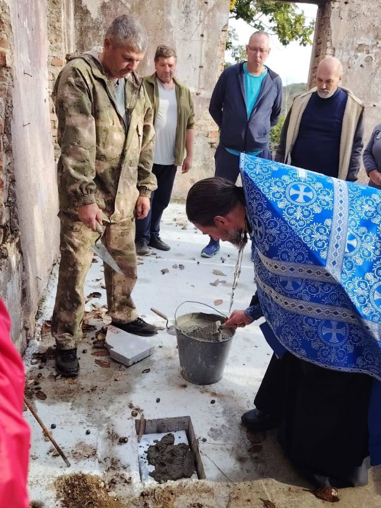 На богослужении также присутствовал директор «Владивостокской буровой компании» А.Л. Васюкевич, который курирует строительство храма, и верующие жители с. Безверхово. Во время чина освящения священники заложили капсулу с грамотой от правящего архиерея, а также воздвигли крест. Всем присутствующим была предоставлена возможность лично положить песочно-цементный раствор на место закладки капсулы.