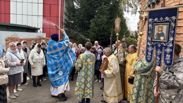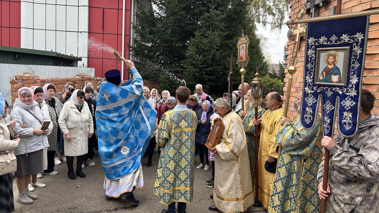 На приходе были совершены праздничная Божественная литургия и водосвятный молебен, а затем священники и миряне отправились в торжественный крестный ход по улицам Покровки.