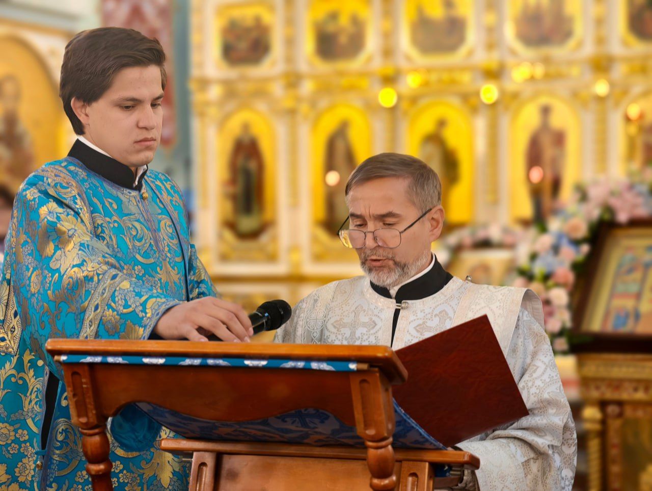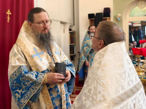 За богослужением была совершена священническая хиротония диакона Сергия Григорьева.