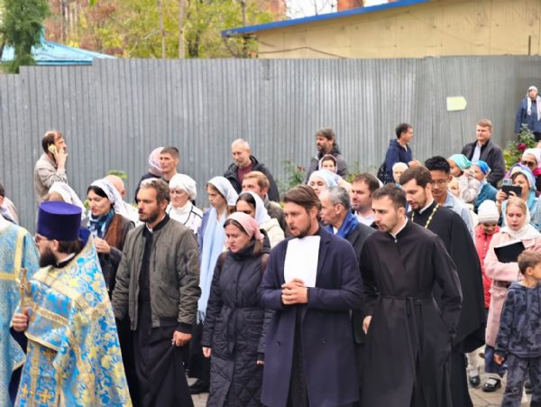 После Литургии митрополит Павел, духовенство и все молящиеся совершили крестный ход вокруг храма. Во время остановок читалось Евангелие, а верующих окропляли святой водой.