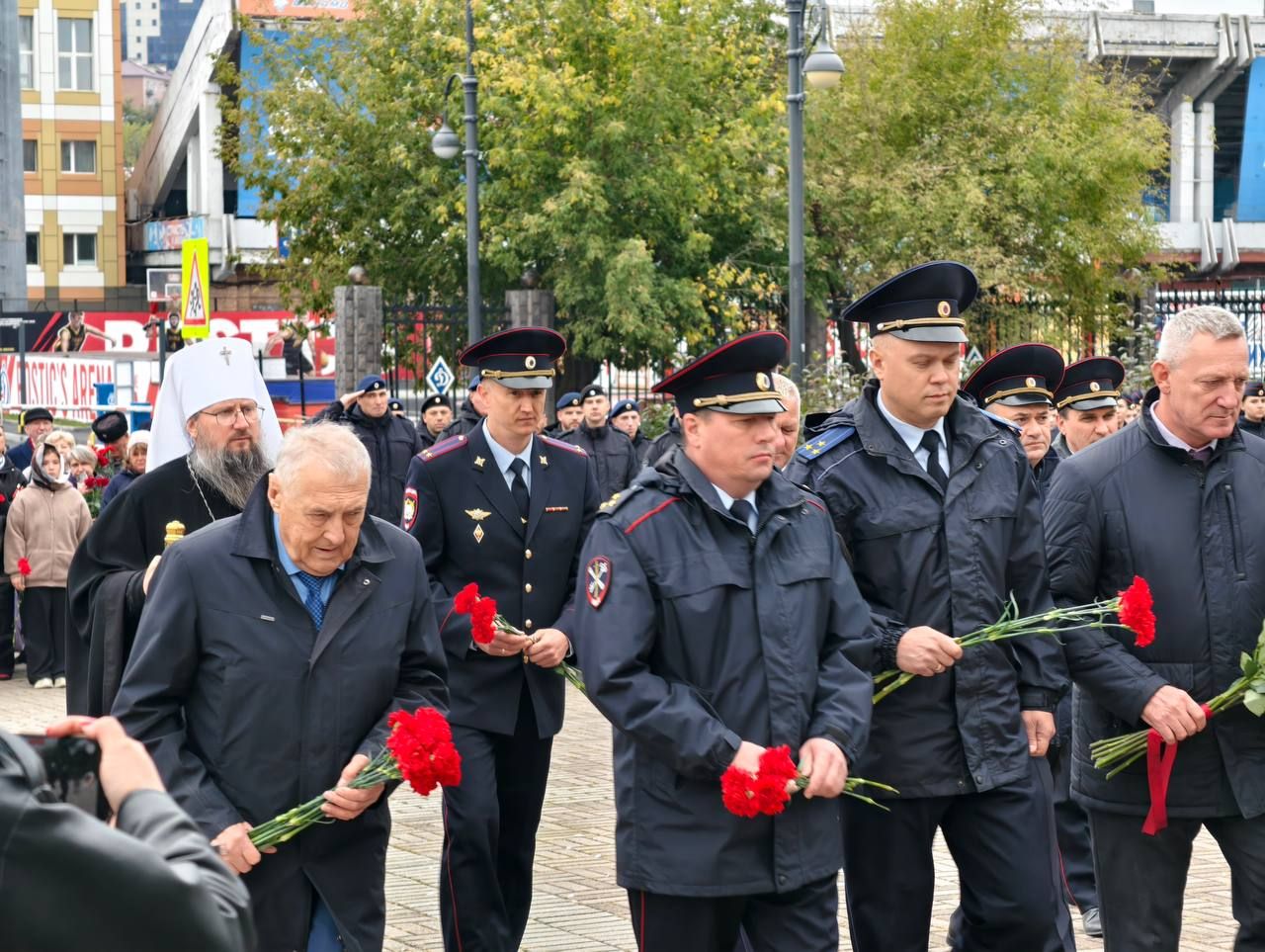 15 октября, в день памяти сотрудников органов внутренних дел Приморского края, погибших при выполнении служебных обязанностей, возле мемориального комплекса, расположенного на территории храма св. блгв. князя Игоря Черниговского г. Владивостока, состоялся траурный митинг.