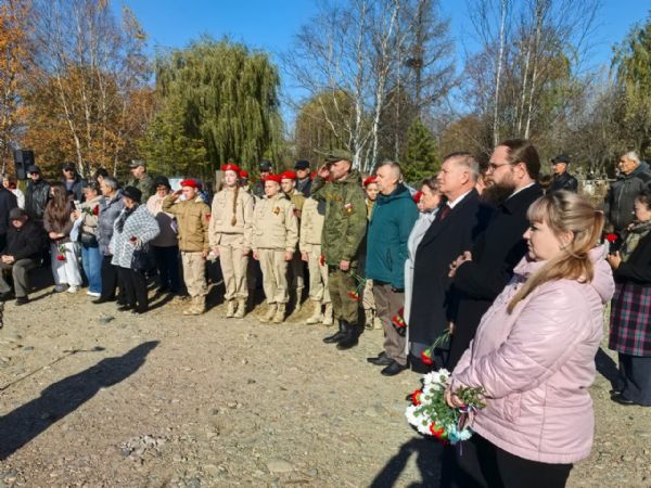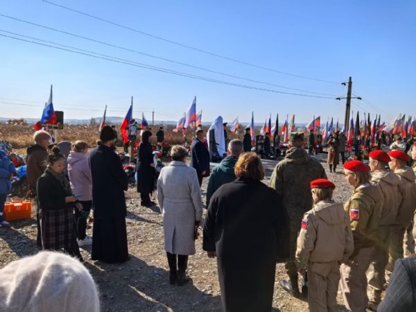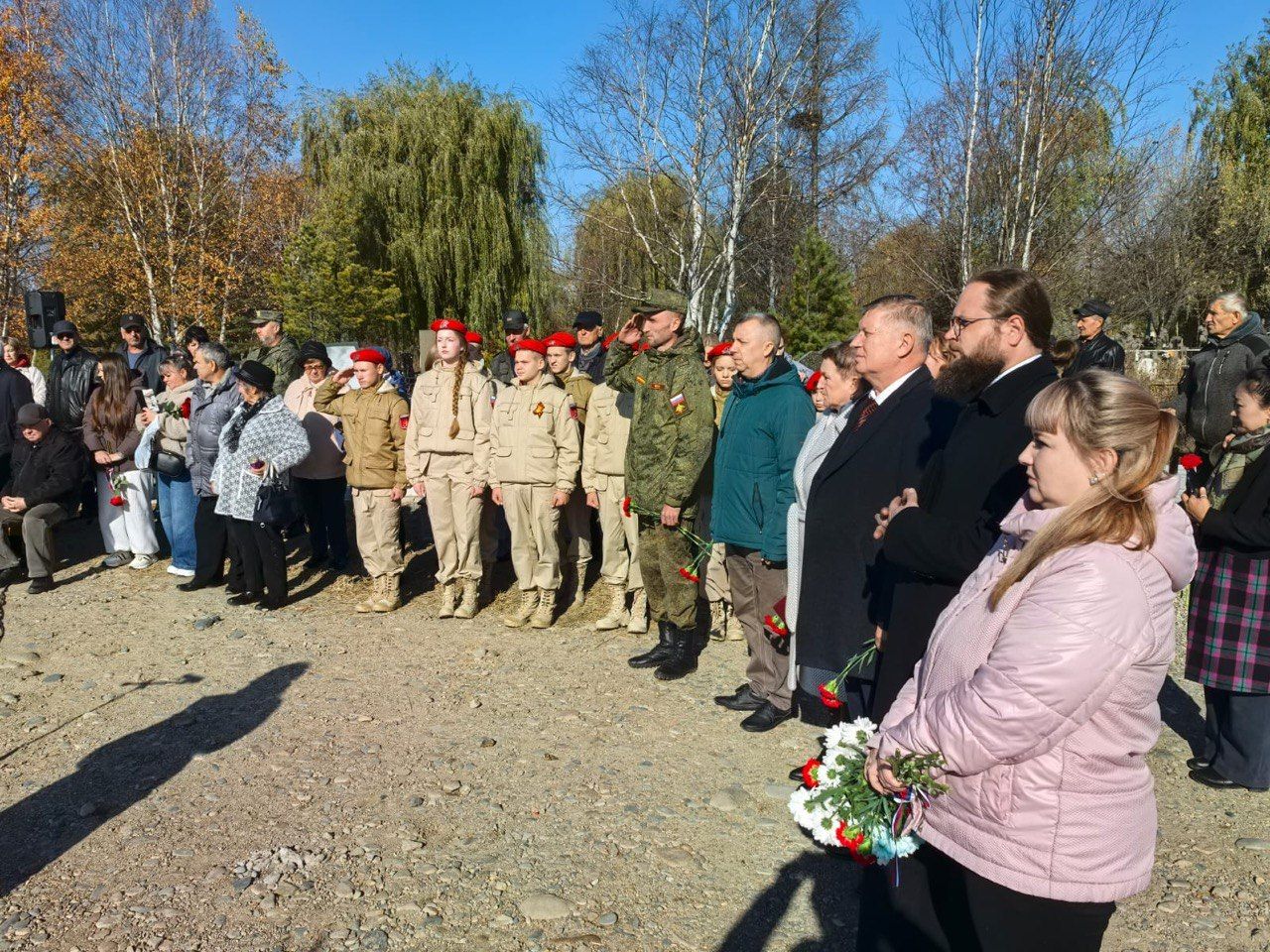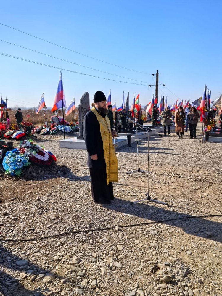 В церемонии открытия памятных стел принял участие протоиерей Дмитрий Федорин, настоятель храма Покрова Пресвятой Богородицы с. Покровка. Отец Дмитрий выступил со словом, в котором говорил о великой силе жертвенной любви и напомнил слова из Евангелия: «Нет больше той любви, как если кто положит душу свою за други своя» (Ин. 15:13). Затем батюшка совершил литию, испросив у Господа прощения грехов погибших воинов и их упокоении в Царствии Небесном.