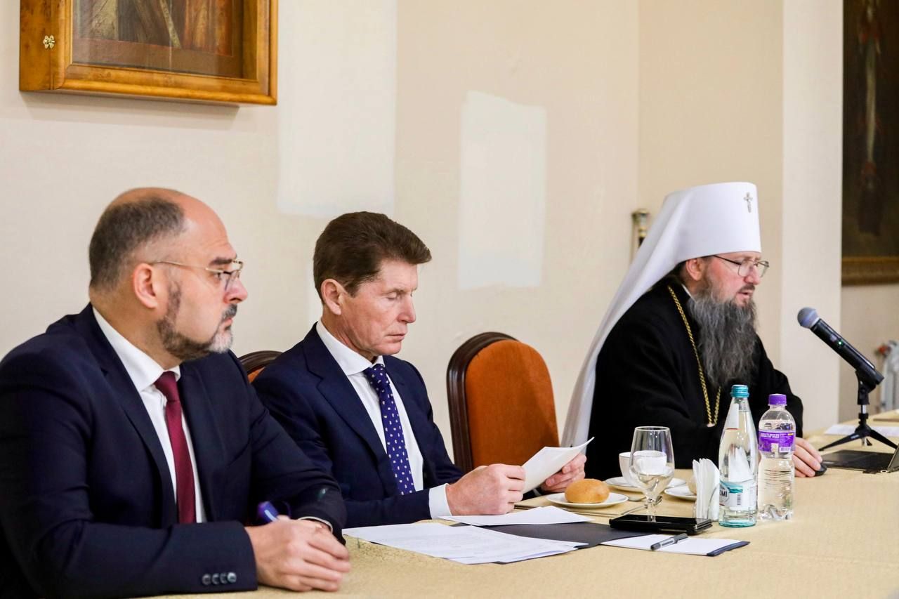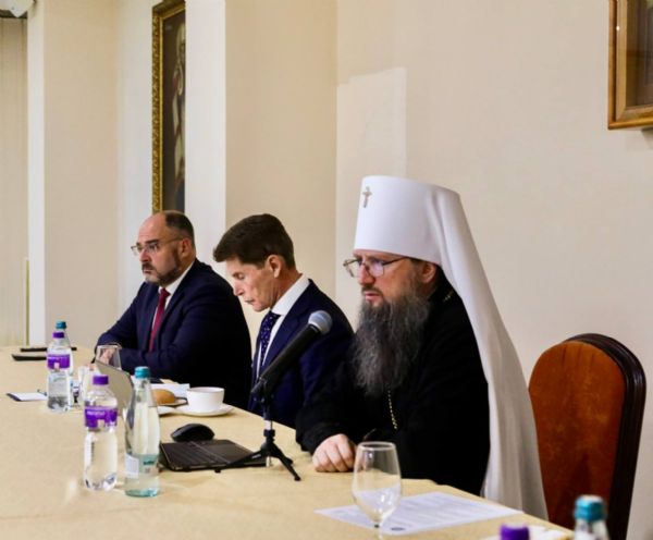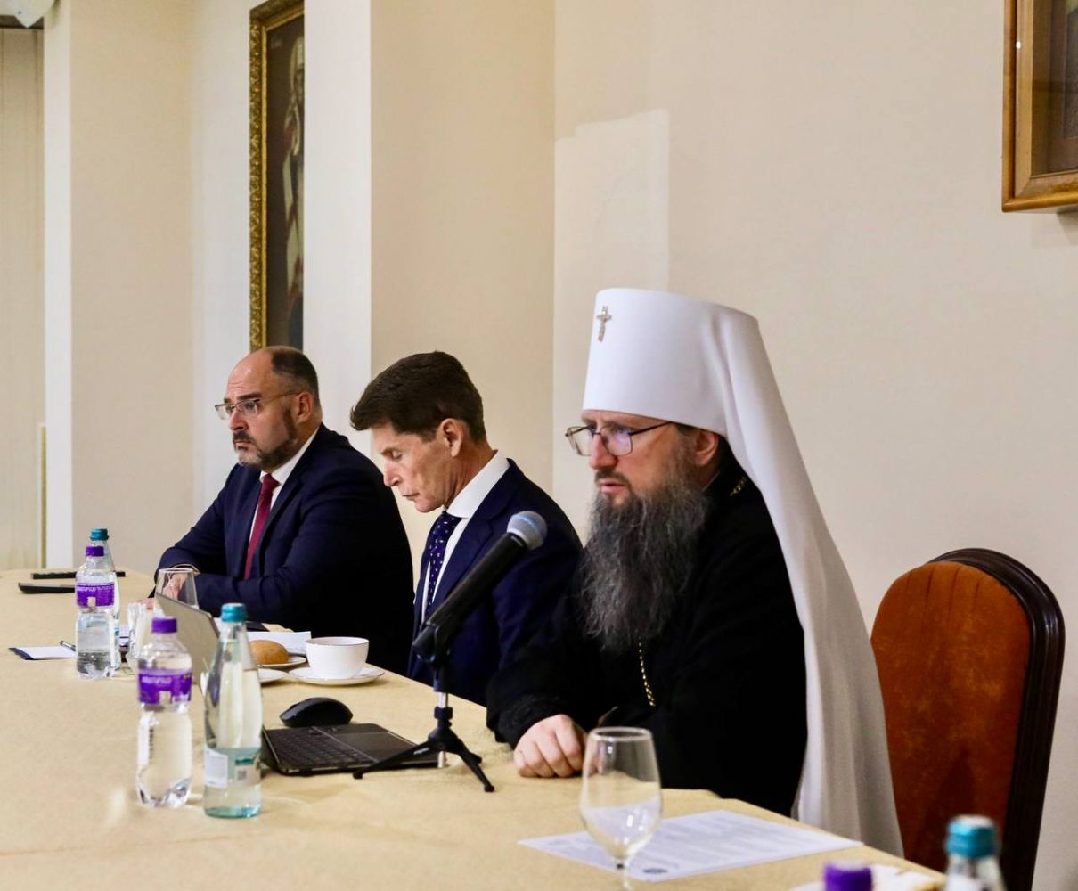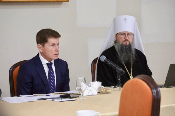 Затем к гостям присоединились губернатор Приморского края Олег Кожемяко и глава г. Владивостока Константин Шестаков. Поприветствовав всех присутствующих, Олег Николаевич и владыка Павел ознакомили гостей с главной темой собрания — противодействие абортам. Был поднят вопрос о добровольном отказе частных медицинских учреждений от лицензии на искусственное прерывание беременности.