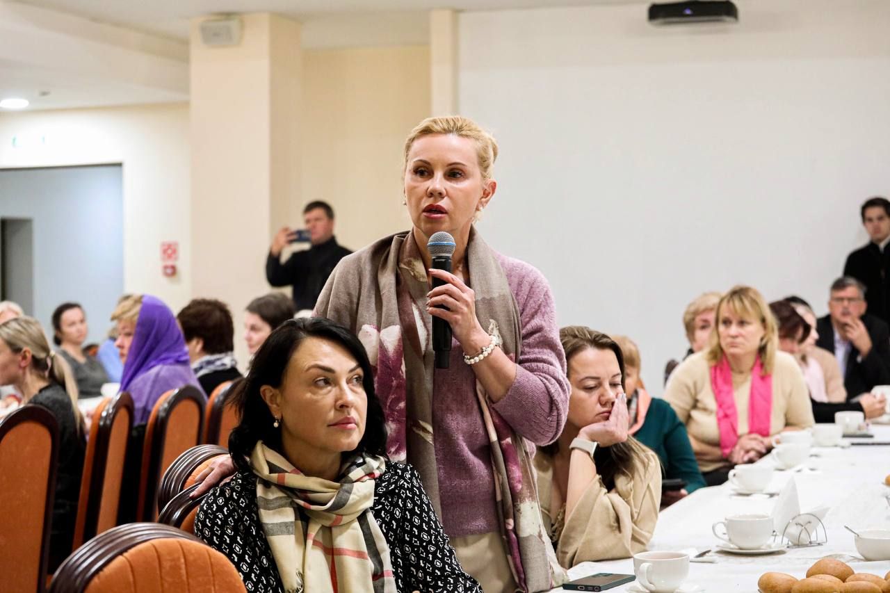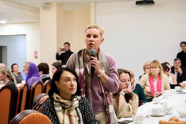 В завершение встречи с речью выступила Александра Мухотина, президент «Союза медицинских организаций и врачей Приморского края». Александра Григорьевна предложила провести совместное собрание с педагогами нашего региона и объяснила необходимость введения в школьную программу уроков духовного и нравственного воспитания, на которых детям будут прививать традиционные ценности и рассказывать о правильном взаимоотношении полов.