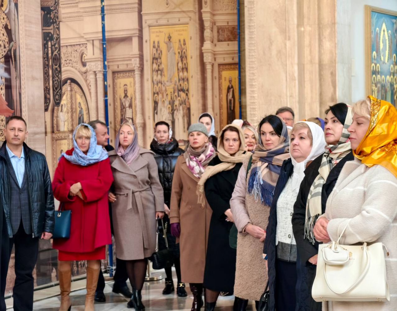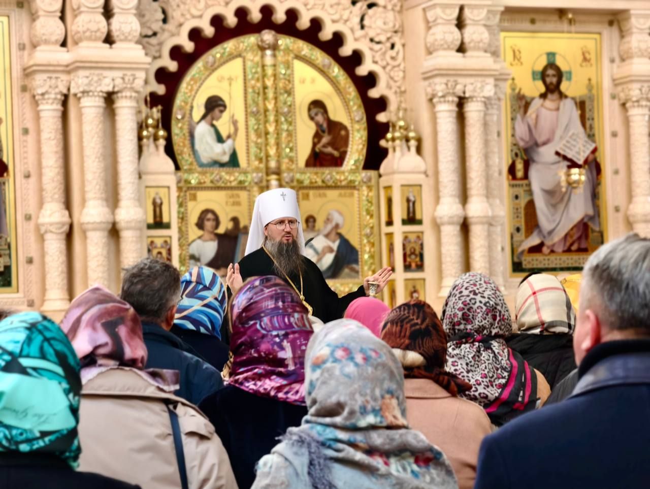 Встреча началась с экскурсии по собору. Владыка Павел рассказал гостям о святынях и внутреннем убранстве храма. С помощью образов иконостаса архипастырь смог разъяснить слушателям смысл многих событий Ветхого и Нового завета.