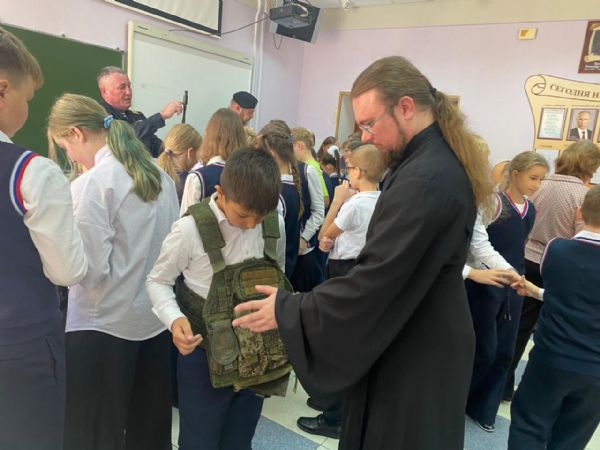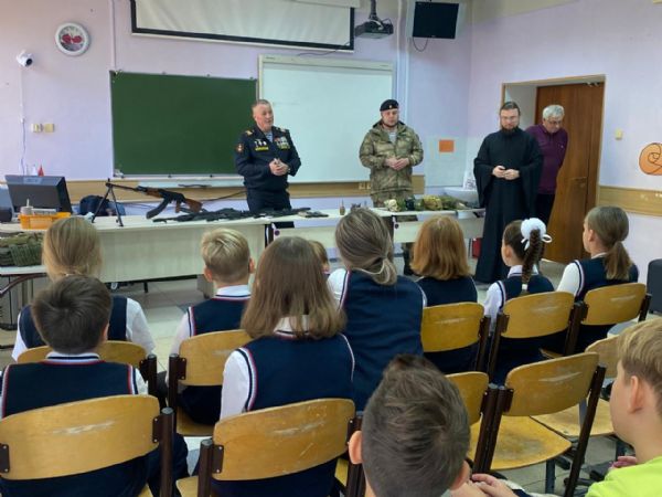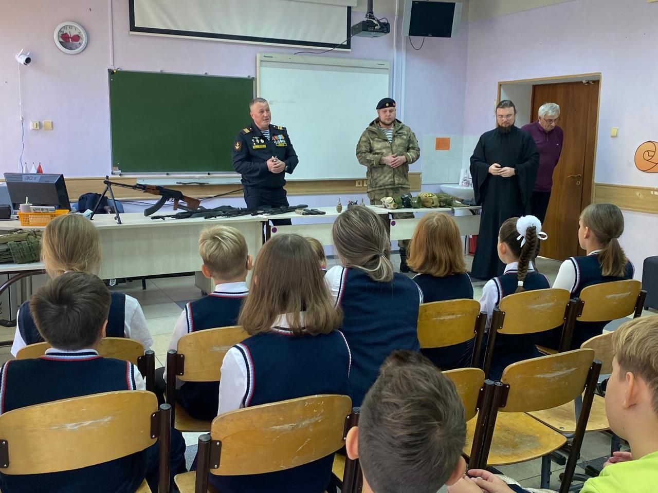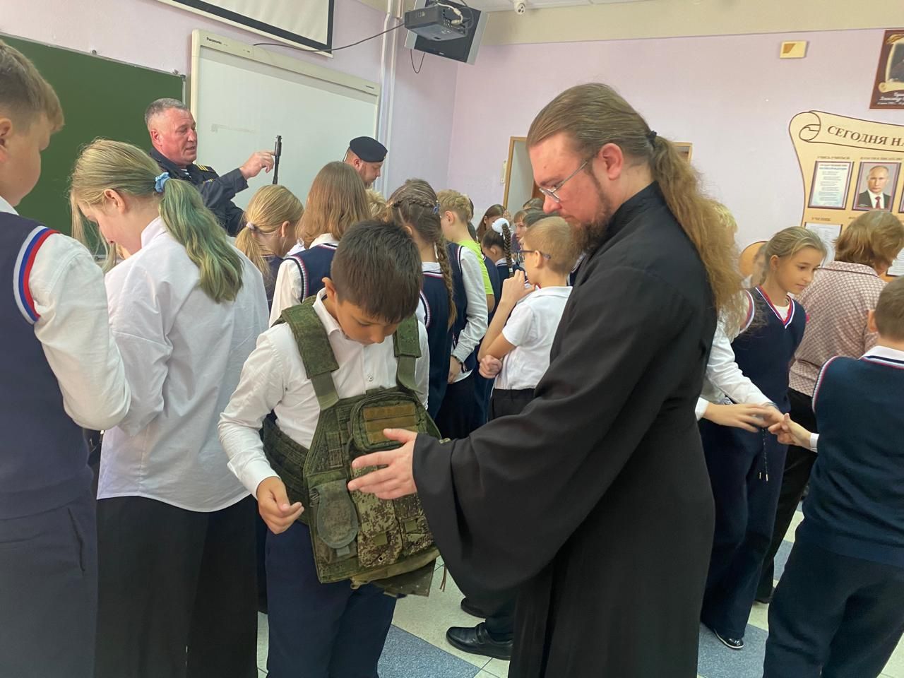 Руководство и педагоги средней школы №6 г. Владивостока пригласили инока Дионисия совместно с военнослужащими ВС РФ, ветеранами СВО, участниками "Союза морской пехоты и ветеранов боевых действий" на урок к пятиклассникам
