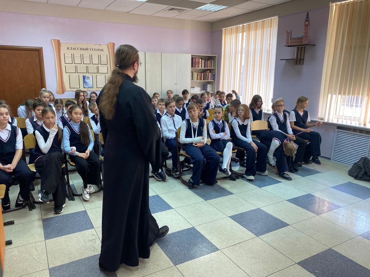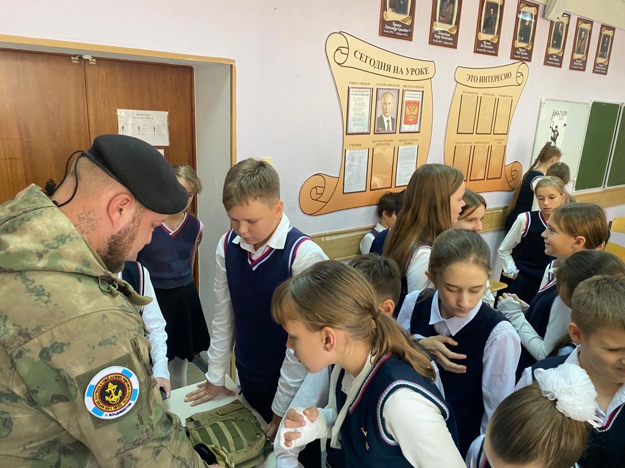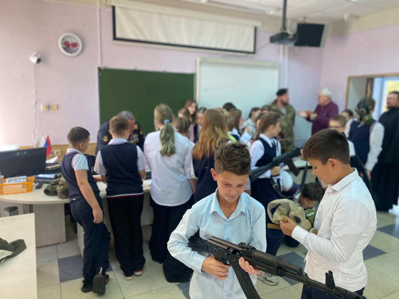 Руководство и педагоги средней школы №6 г. Владивостока пригласили инока Дионисия совместно с военнослужащими ВС РФ, ветеранами СВО, участниками "Союза морской пехоты и ветеранов боевых действий" на урок к пятиклассникам