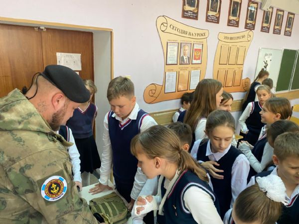 Военнослужащие говорили о своих боевых наградах, о боевых действиях, в которых принимали участие. Рассказали о том, что русская армия – это армия защитников, а не агрессоров. Бойцы рассказали также о том, как они эвакуировали из зоны боевых действий семьи с детьми, как приходилось выводить детей из-под обстрелов. Эта тяжелая тема вызвала слёзы даже у учителей.