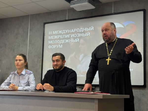 Среди докладчиков был руководитель епархиального отдела по взаимодействию с правоохранительными органами и МЧС иерей Дмитрий Брызгалов. Отец Дмитрий провел со студентами откровенную беседу о религиозном сознании и традиционных семейных ценностях. Он начал с объяснения, что религиозное сознание — это внутреннее осмысление своей веры, духовных ценностей и понимание смысла жизни через призму веры. Он подчеркнул, что вера помогает человеку ориентироваться в сложных ситуациях, укрепляет моральные принципы и способствует формированию нравственного характера.
