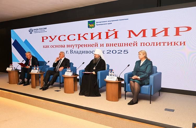 31 октября в рамках фестиваля «Русский мир» в Приморском филиале национального центра «Россия» прошла пленарная дискуссия «Русский мир как основа внутренней и внешней политики России». Встреча была посвящена обсуждению вопросов укрепления России в мировом гуманитарном пространстве и роли гражданского общества в этом процессе.