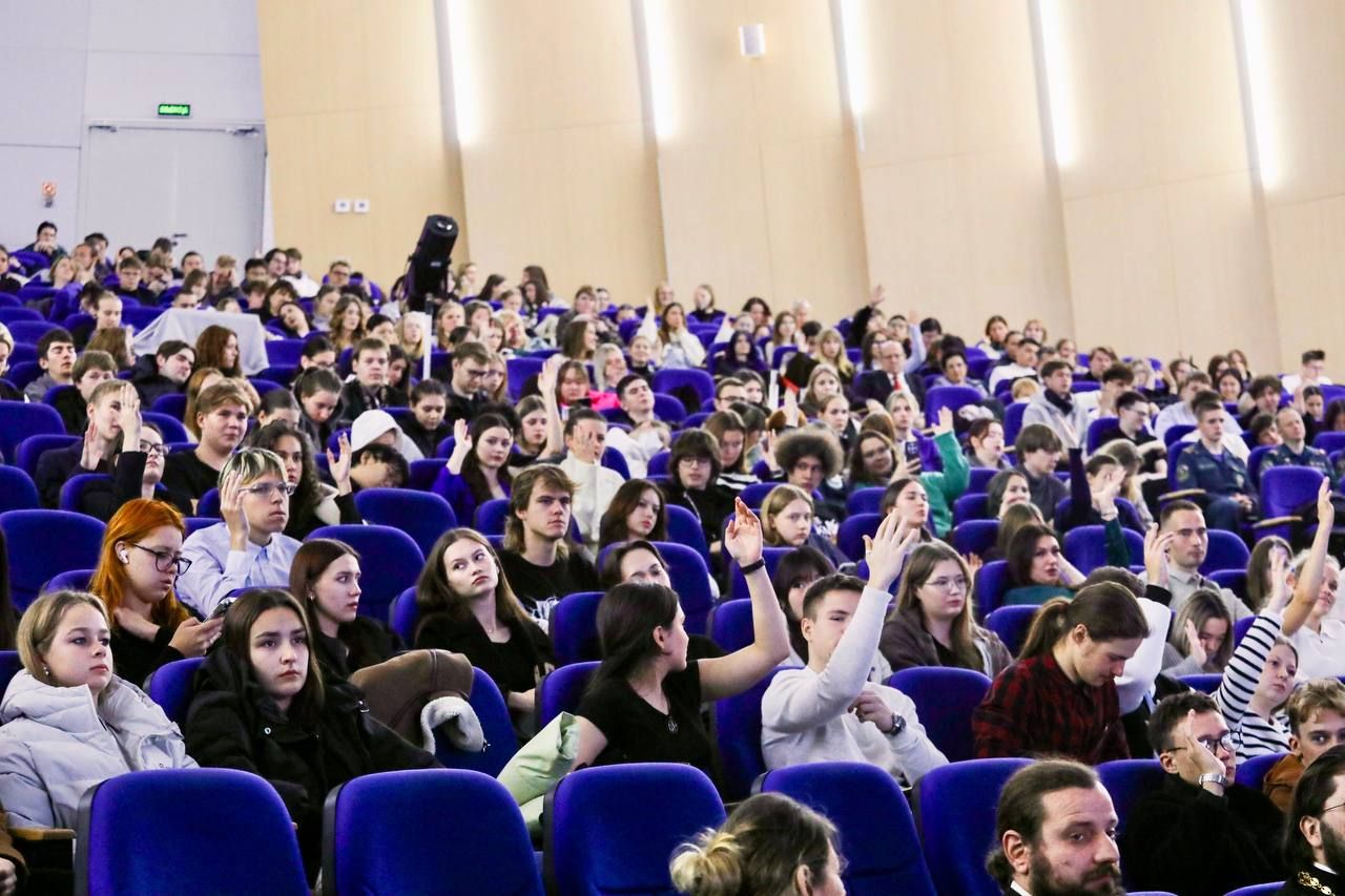 Григорий Сайфуллин провел интерактив со студентами. В ходе дискуссии присутствующим удалось выяснить, что одна из одна из основных причин многочисленных разводов среди молодежи (74 развода на 100 браков) является слишком раннее узаконение отношений.