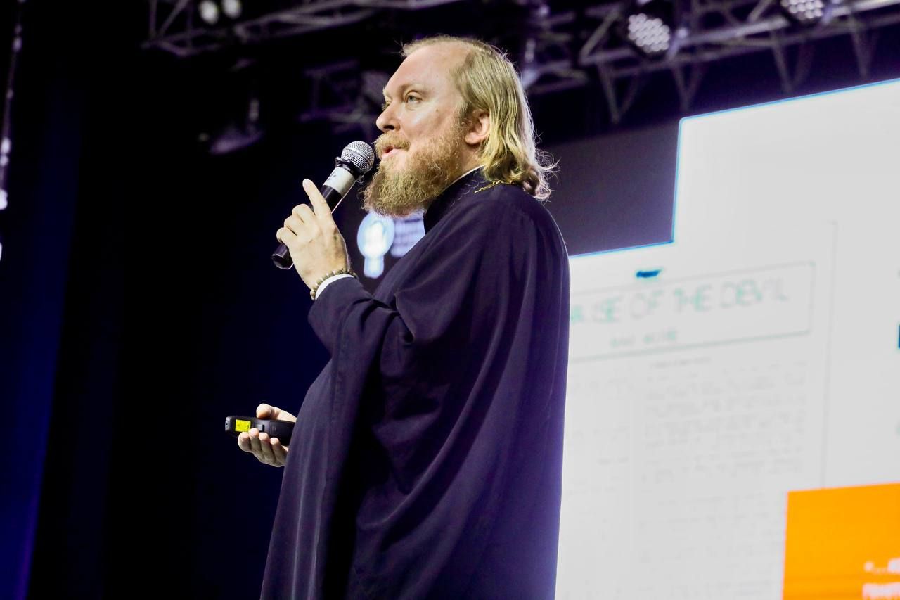 С докладом «Об опасности интеграции идеологии трансгуманизма в правовые акты государства и общественное сознание» обратился к аудитории отец Федор. Священнослужитель пояснил значение термина «трансгуманизм» и его происхождение, а также указал на опасное влияние данной концепции на современное поколение. На примере отрывка из сказки Г.Х. Андерсена «Снежная королева» отец Федор раскрыл вред развития технологий без вклада в них духовно-нравственной составляющей. В завершение своего выступления о. Федор выразил важную мысль: