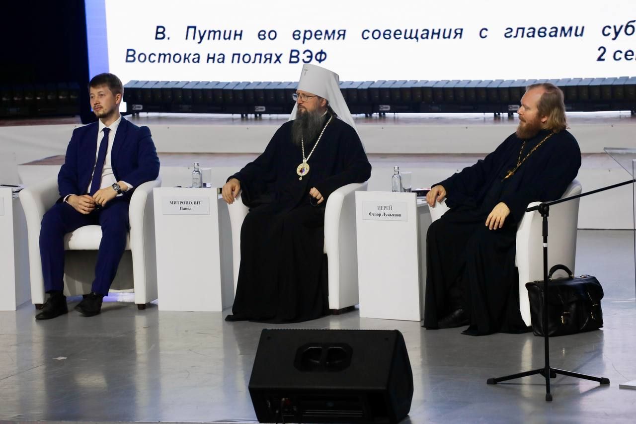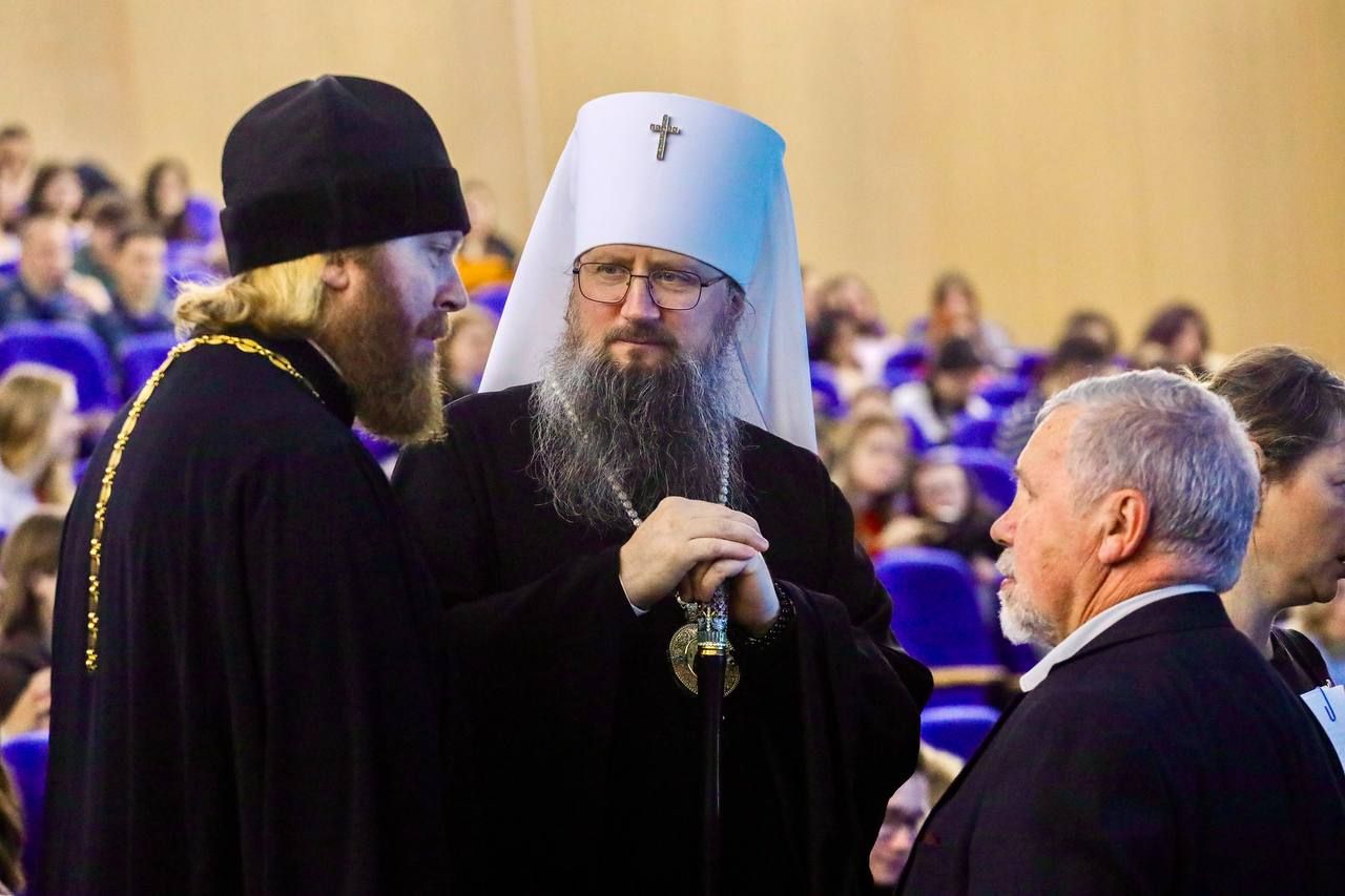 Владыка Павел выступил с приветственным словом, в котором обозначил тему сегодняшней встречи — семья и традиционные ценности. Правящий архиерей выразил благодарность губернатору Приморского края, Олегу Кожемяко, за активное содействие и сотрудничество в вопросах духовно-нравственного воспитания молодежи и противодействия абортам. Свою речь глава митрополии продолжил докладом «Божий замысел о человеке».