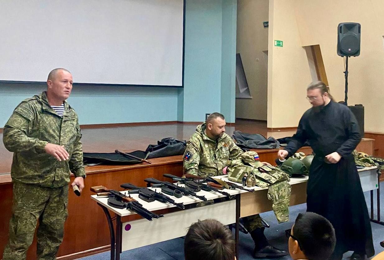 - Радостно стало на сердце от того, что дети уловили самую суть нашего урока – сила России в единстве духа, веры и любви. Ну и, конечно, на всех ребят произвела впечатление возможность подержать в руках настоящее оружие, — сказал инок Дионисий.
