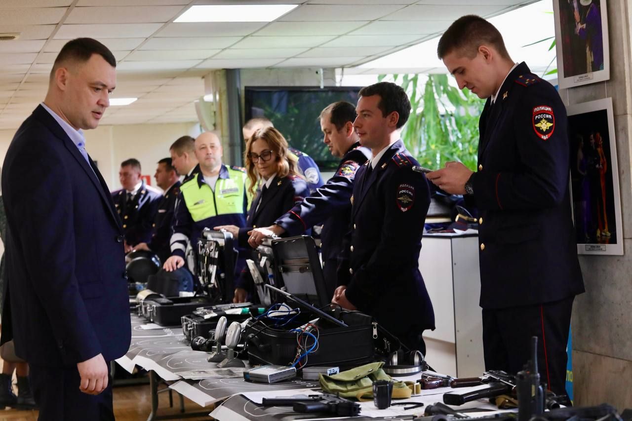 В фойе театра была организована выставка оружия и специальной техники, используемой в работе правоохранительных органов. Все желающие могли рассмотреть и подержать в руках боевое снаряжение.