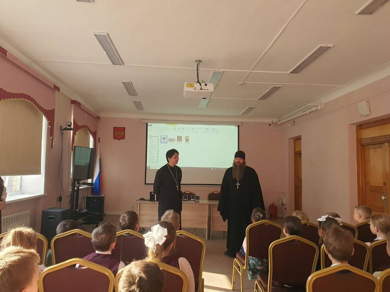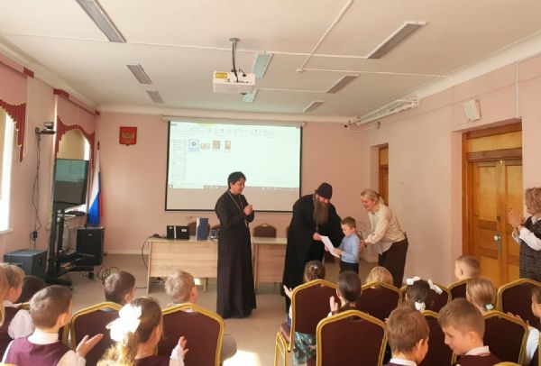 В МБОУ СОШ №57 г. Владивостока состоялась встреча протоиерея Андрея Калчева и иеромонаха Марка (Корнилова) с учениками начальных классов школы №57 и воспитанниками детского сада №182