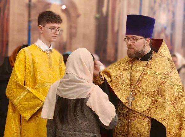 Во время вечерни глава митрополии совершил чин освящения пяти хлебов, вина и елея. Молящиеся были помазаны освященным елеем в знак Божией милости ко всем, кто приносит покаяние.