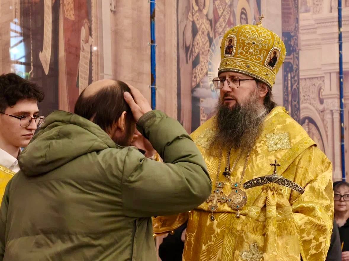 За богослужением правящий архиерей помазал прихожан освященным елеем в знак Божией милости ко всем, кто приносит покаяние.