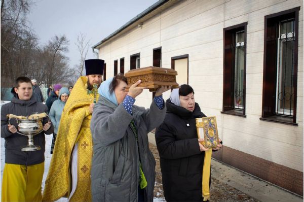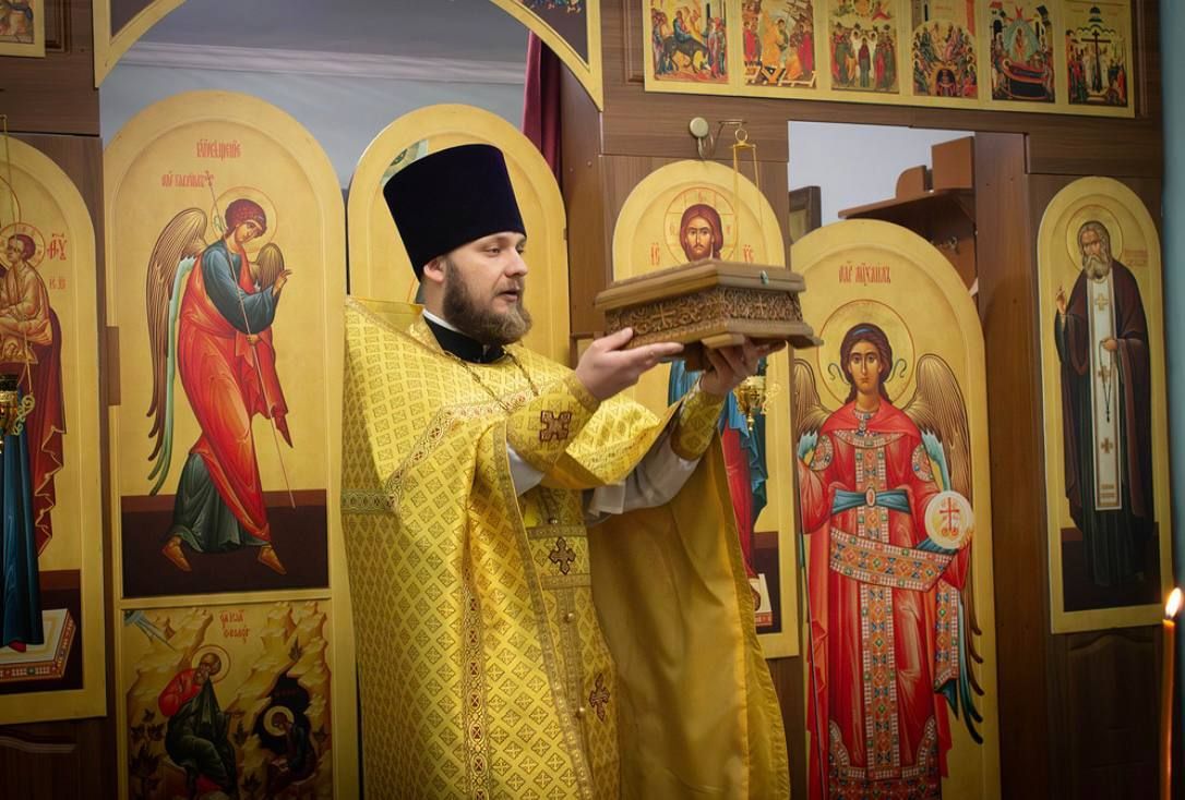 Настоятель храма протоиерей Дмитрий Федорин и прихожане торжественно встретили святыню. После отец Дионисий и отец Димитрий совершили Божественную литургию. Завершилось богослужение окроплением святой водой.