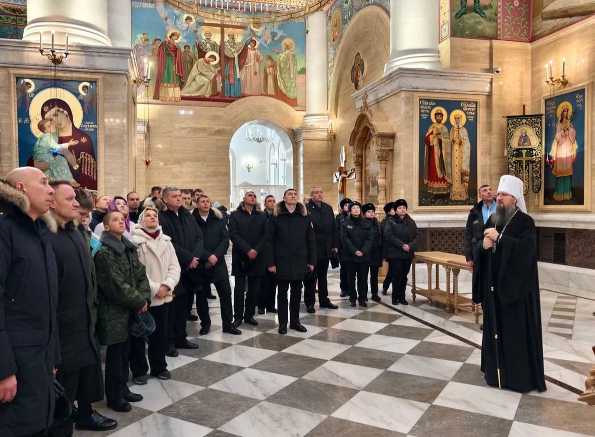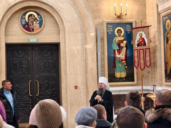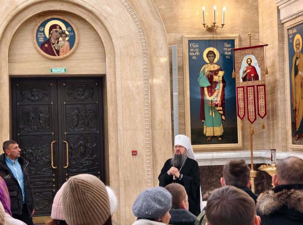 Архипастырь провел экскурсию по собору, рассказал о его архитектуре и внутреннем устройстве, а также о богословской идее иконостаса и значении икон. Присутствующие узнали эпизоды житий некоторых святых и о смысле православных праздников.