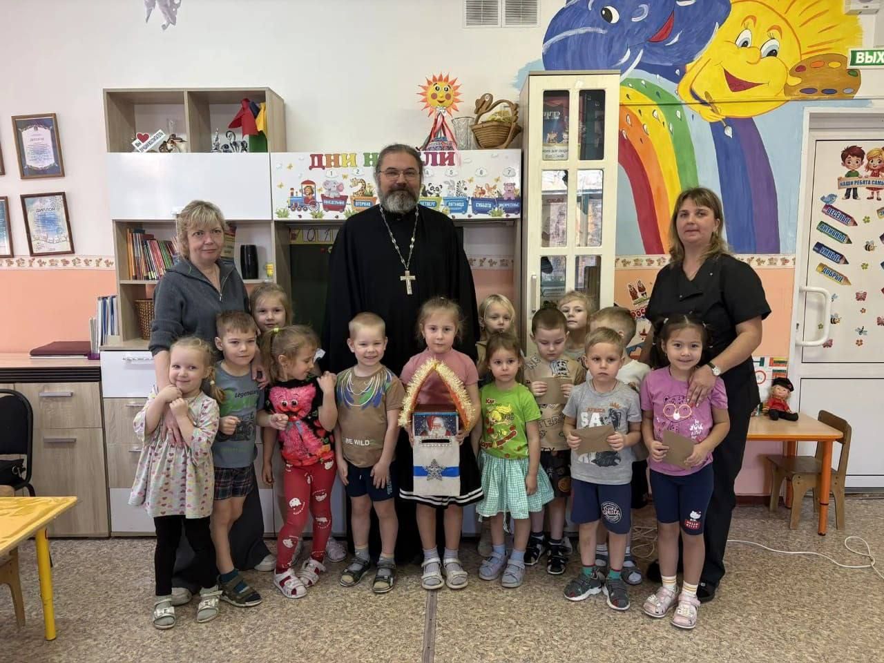 В рамках муниципального проекта «Благо-Дарю» иерей Илия Точуков, настоятель храма Порт-Артурской иконы Божией Матери г. Владивостока, провел киноурок «Новогодний подарок» для воспитанников детского сада №30