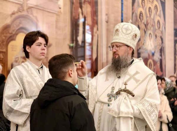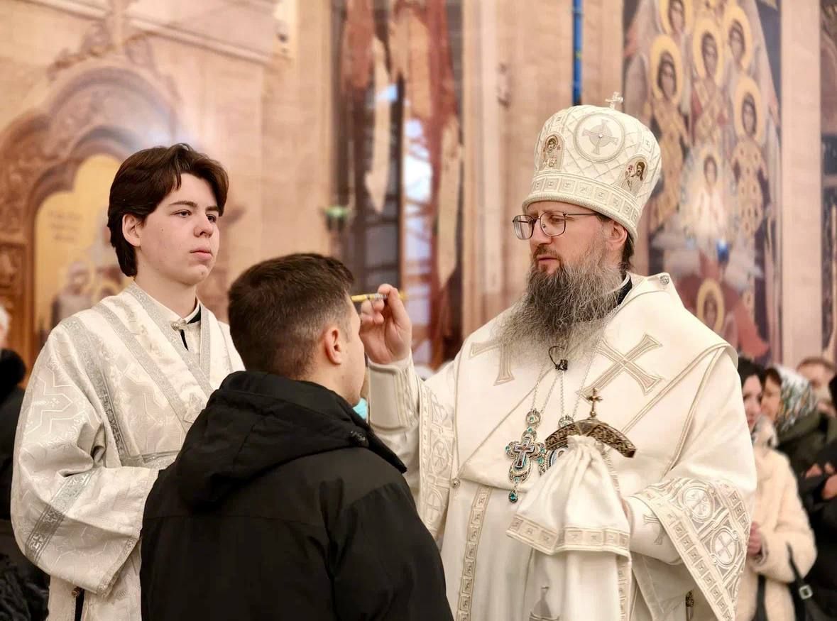 Во время богослужения архипастырь совершил Елеопомазание, символизирующее Божию милость ко всем грешникам.
