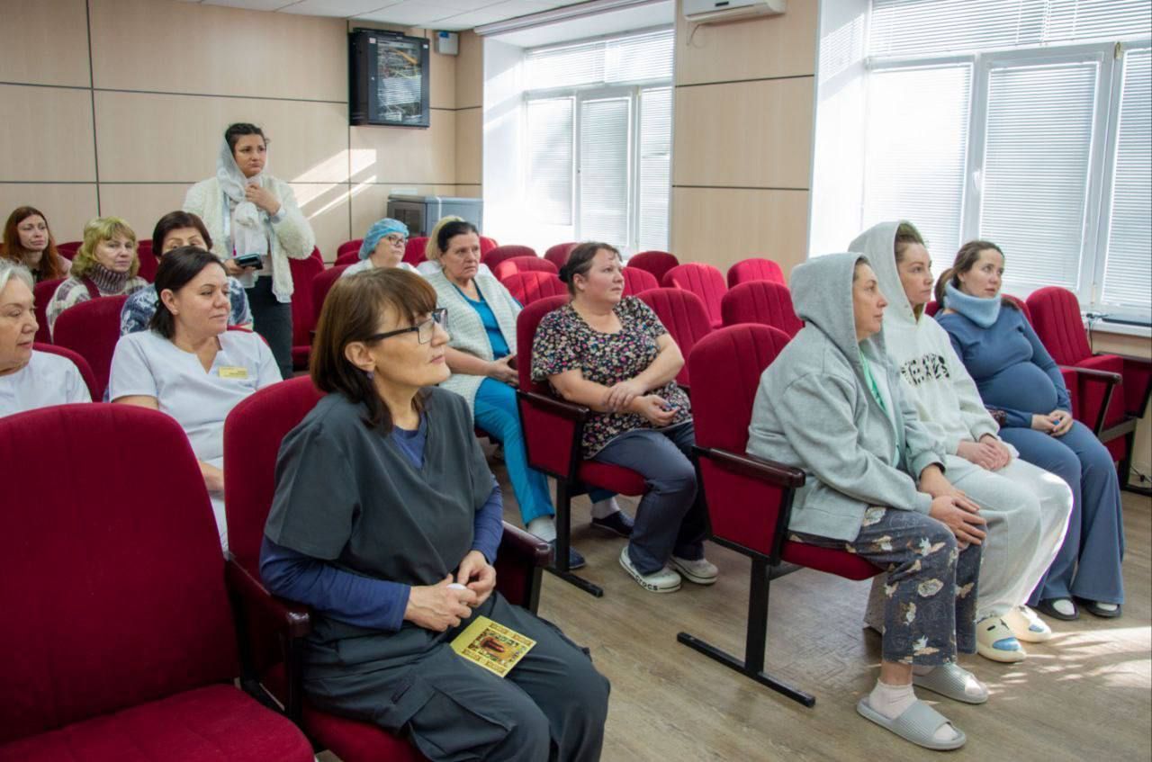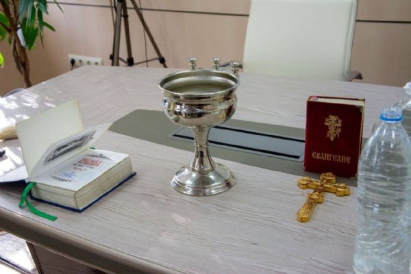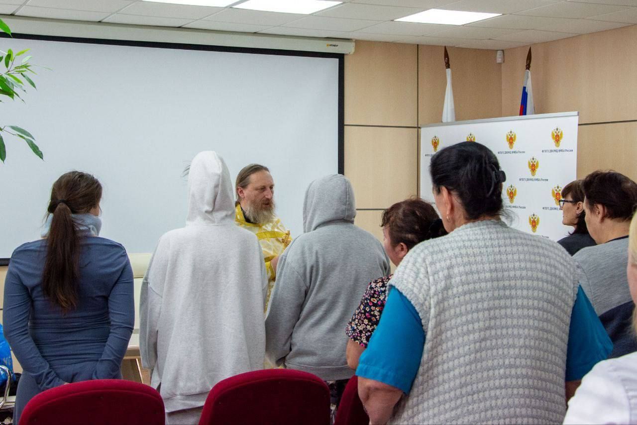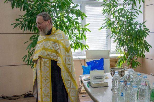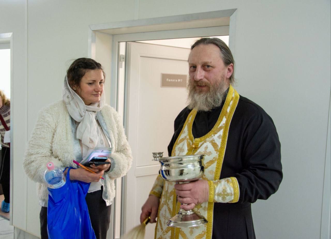 Отец Андрей совершил водосвятный молебен. По окончании богослужения батюшка пообщался с медицинским персоналом и поблагодарил их за труды. Затем священнослужитель вместе с волонтёрами обошёл палаты, чтобы лично поздравить пациентов с великим праздником. Все помещения были окроплены крещенской водой — святой агиасмой, символизирующей Божию благодать, очищение и укрепление духа.