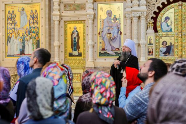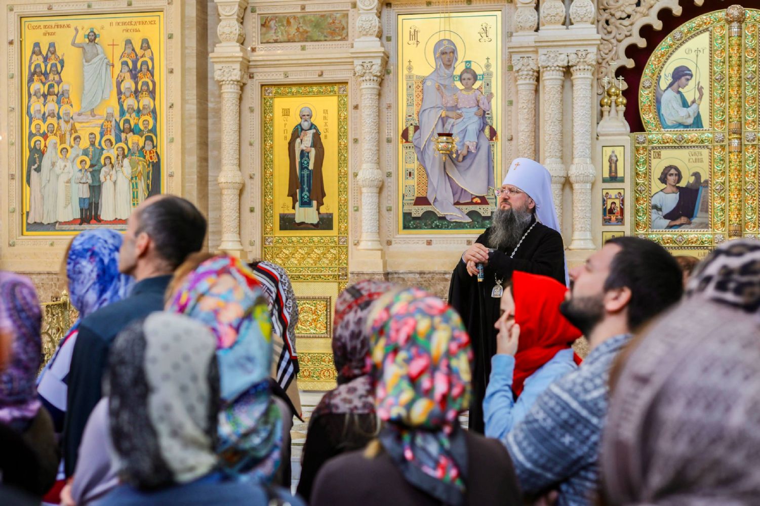 После приветственного слова владыка Павел рассказал экскурсантам об архитектуре храма, алтаре, иконах, особое внимание уделил основам православной веры. Через образы иконостаса и икону «Собор архангела Михаила» правящий архиерей раскрыл библейскую историю о сотворении мира и человечка, грехопадении первых людей и спасительном пришествии Господа нашего Иисуса Христа.