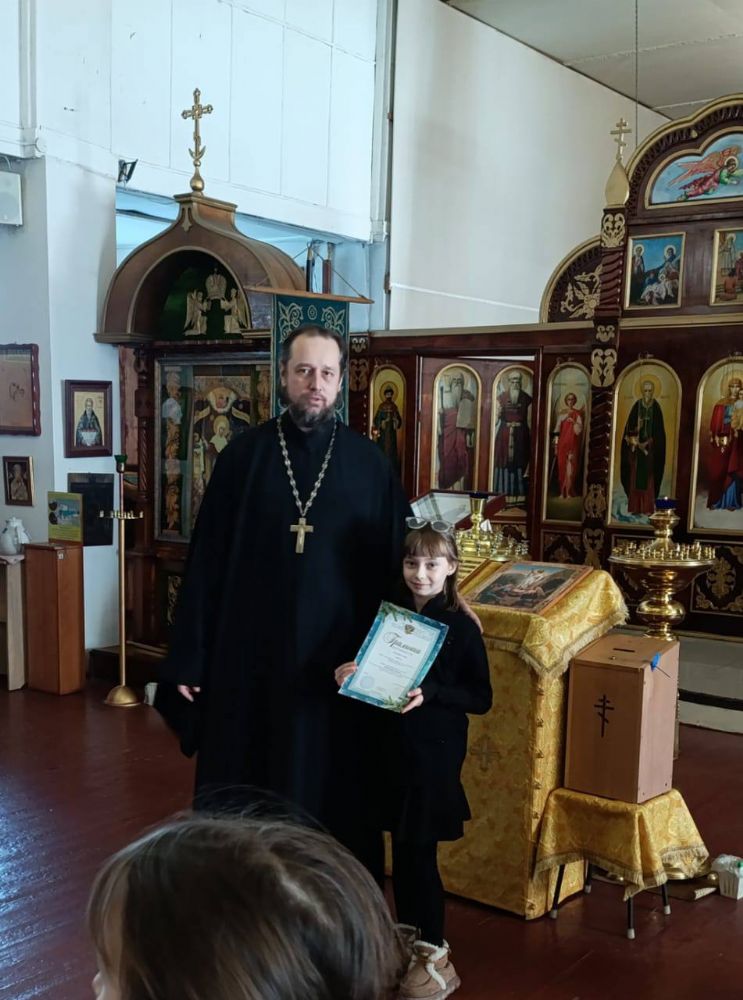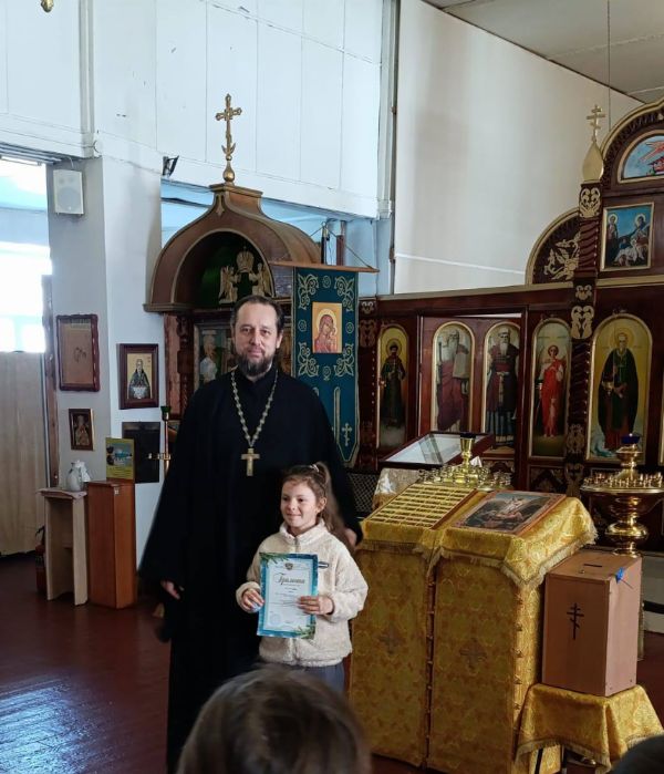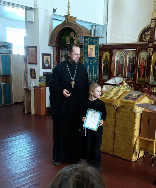 Иерей Андрей Мельников, настоятель храма, наградил участников, призёров и победителей конкурса. Ребятам были вручены грамоты и памятные призы. В самом храме организовали выставку конкурсных работ.