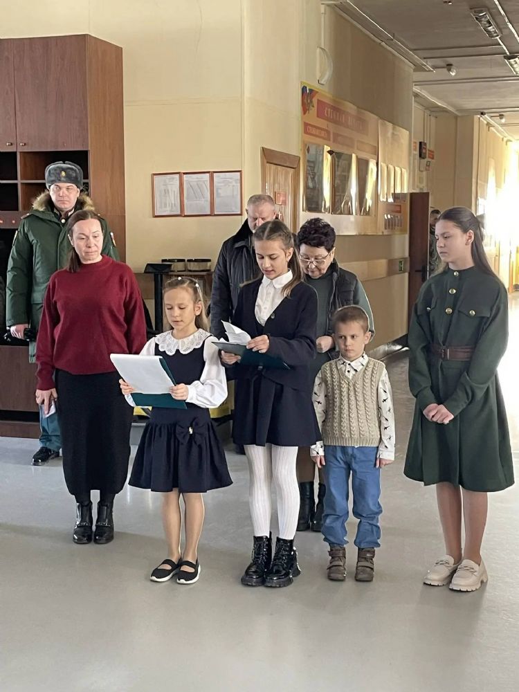 Дети исполнили несколько песен, в том числе песню-молитву «Будь со мною», прочитали стихотворения и вручили военным открытки, сделанные своими руками. Эти тёплые поздравления стали символом благодарности и уважения ребят к людям, охраняющим мир и покой нашего государства.