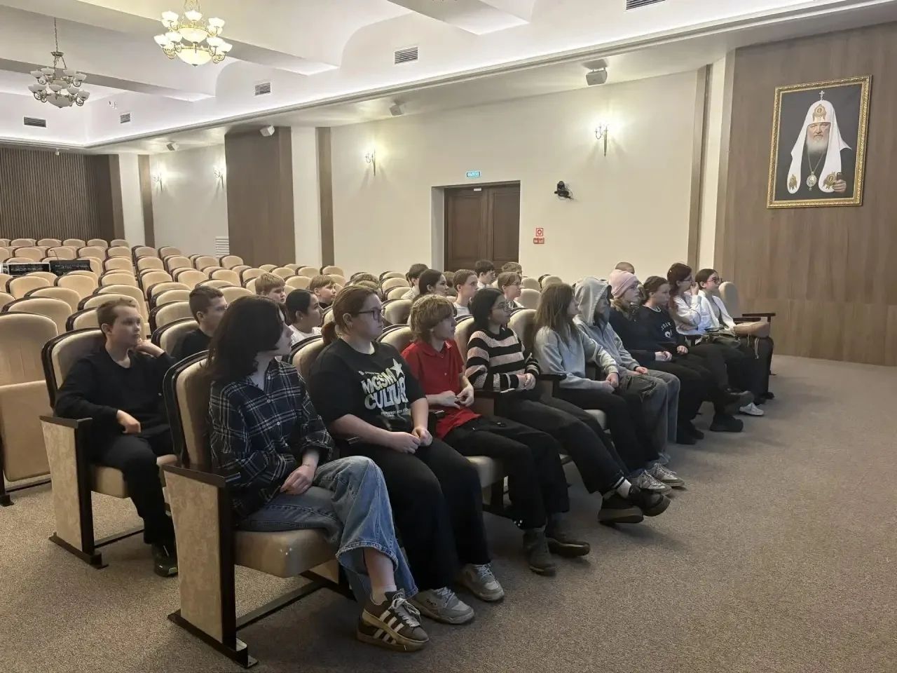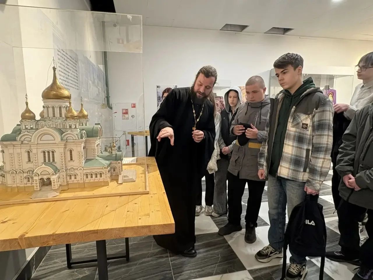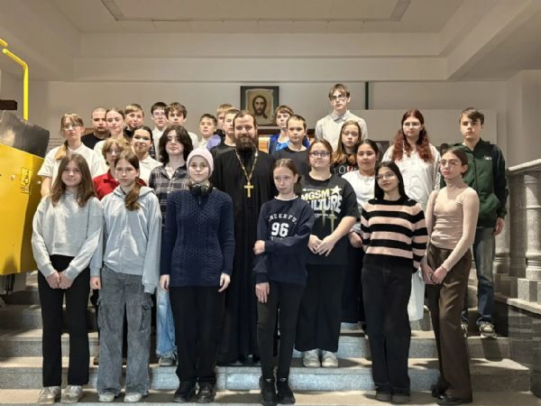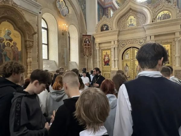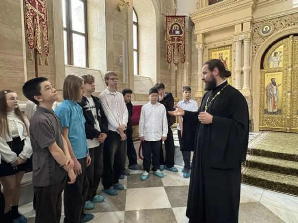 Экскурсию для ребят провёл иерей Владимир Ковальчук, руководитель епархиального отдела по вопросам семьи, защите материнства и детства. Батюшка познакомил школьников с устройством храма, рассказал о необходимости стяжать добродетели и важности уважительных отношений между юношами и девушками.