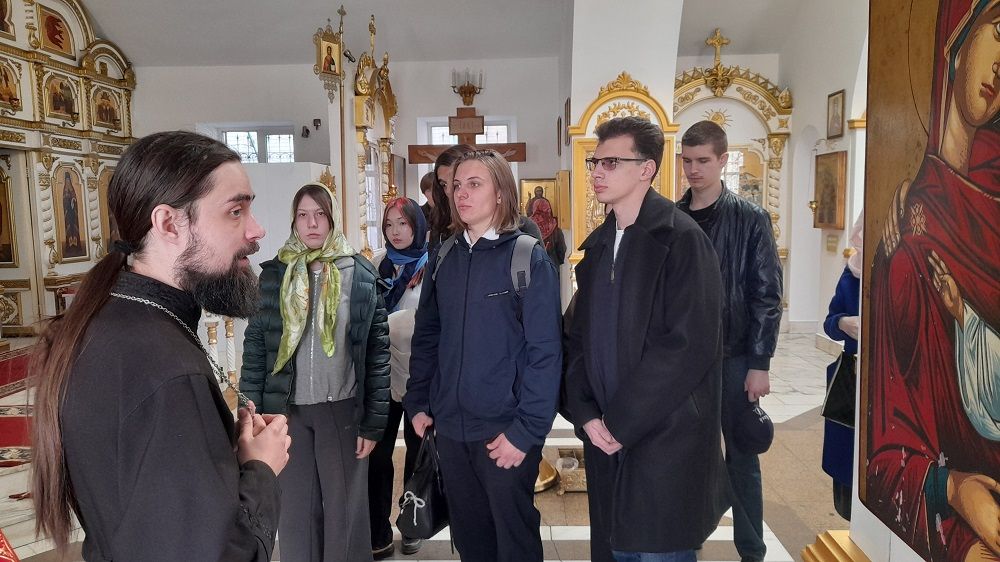 Проводником в мир церковной традиции для будущих теологов стал клирик храма иерей Владимир Корнев. В ходе экскурсии священник подробно объяснил архитектурные особенности храма и его внутреннее устройство. Особое внимание было уделено богослужебным предметам и элементам облачения: отец Владимир продемонстрировал их студентам, раскрыв их символическое значение и практическое назначение в литургической жизни.