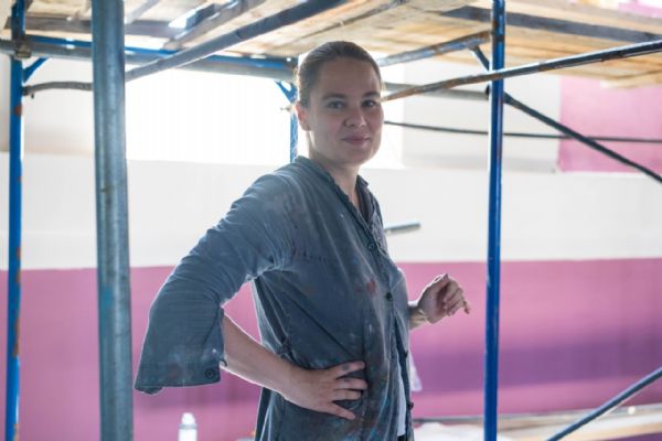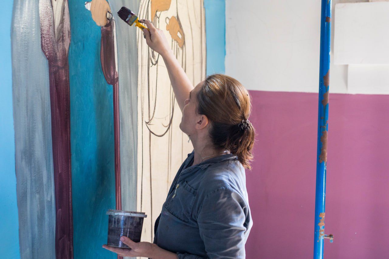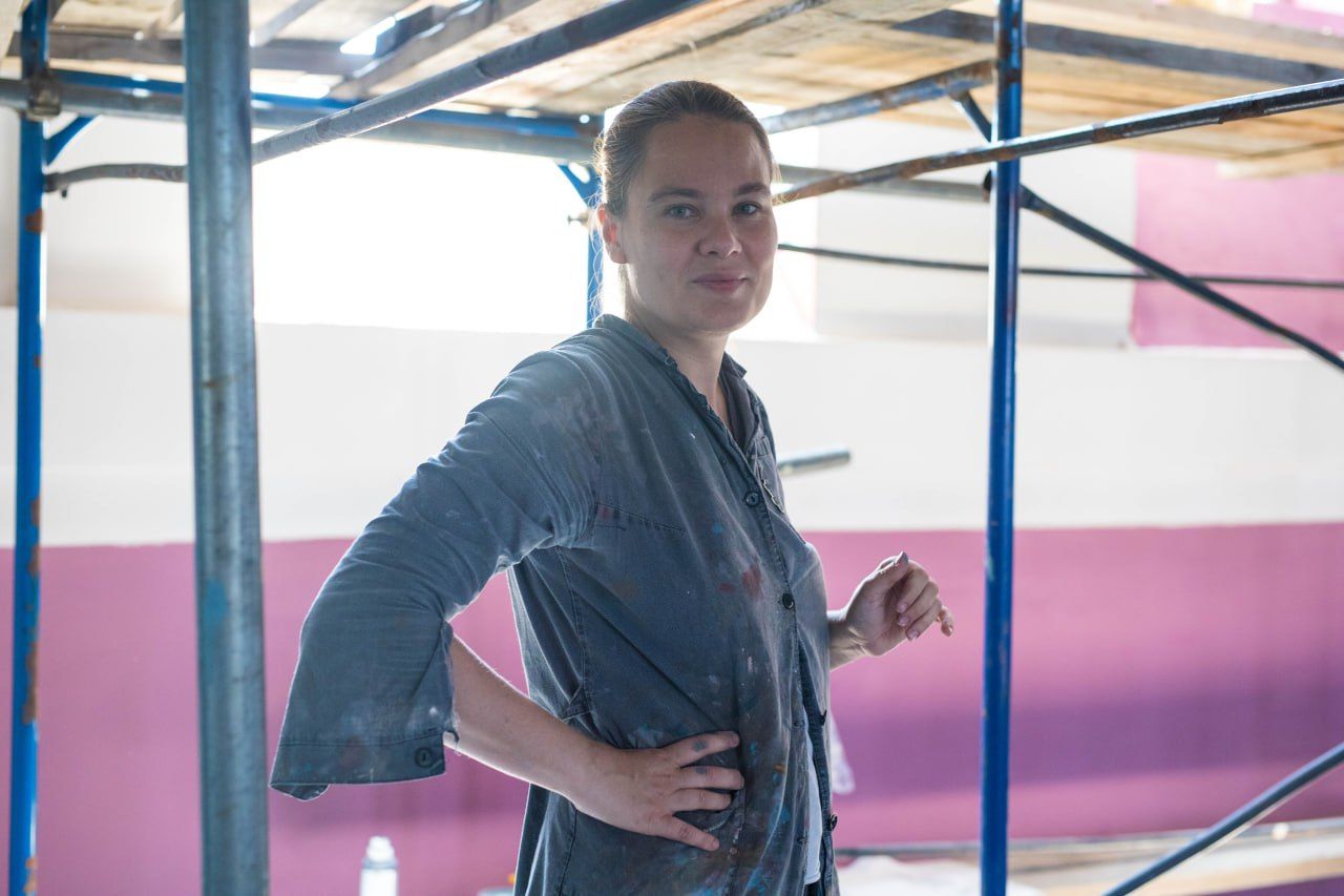 На деревянных настилах тут и там стоят банки с красками. Художники работают силикатными красками – по техническим данным они повторяют те, что наносили в древности на сырую штукатурку. Стена после такой росписи «дышит», поэтому в условиях приморской влажности краска не будет отслаиваться. Для золочения фонов используют листовое сусальное золото.