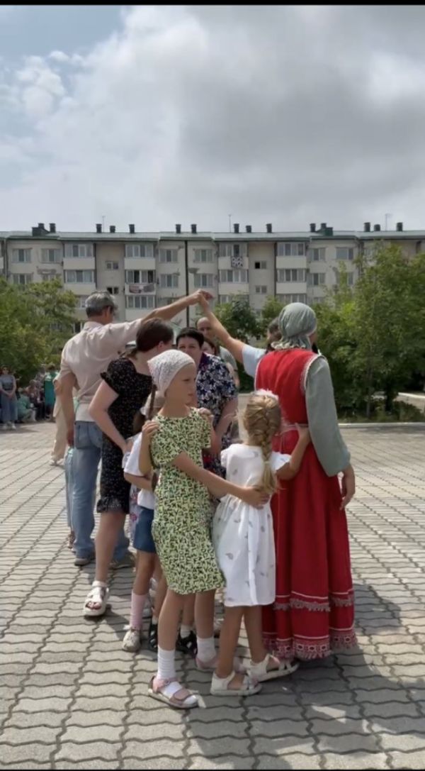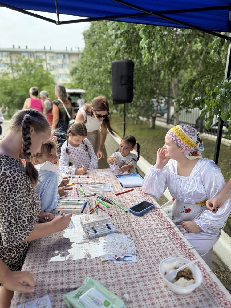 На территории перед храмом работали интерактивные площадки с играми и хороводами. Все желающие имели возможность подписать открытку бойцам на СВО. «Русская Община» по традиции порадовала гостей румяными блинами, вкусной кашей и чаем из самовара.